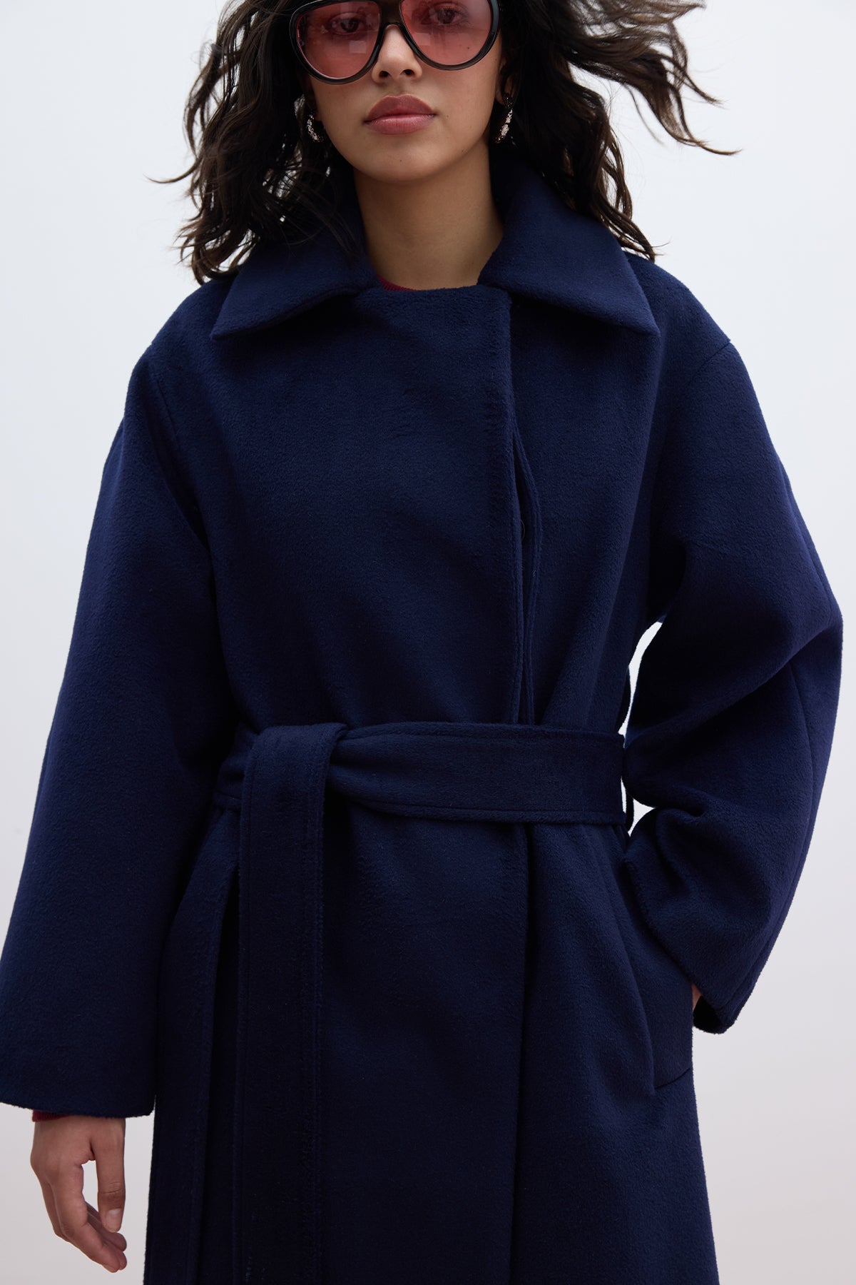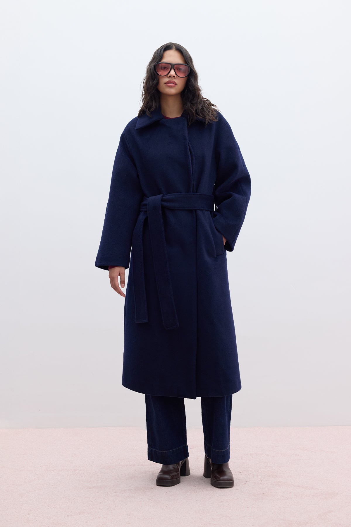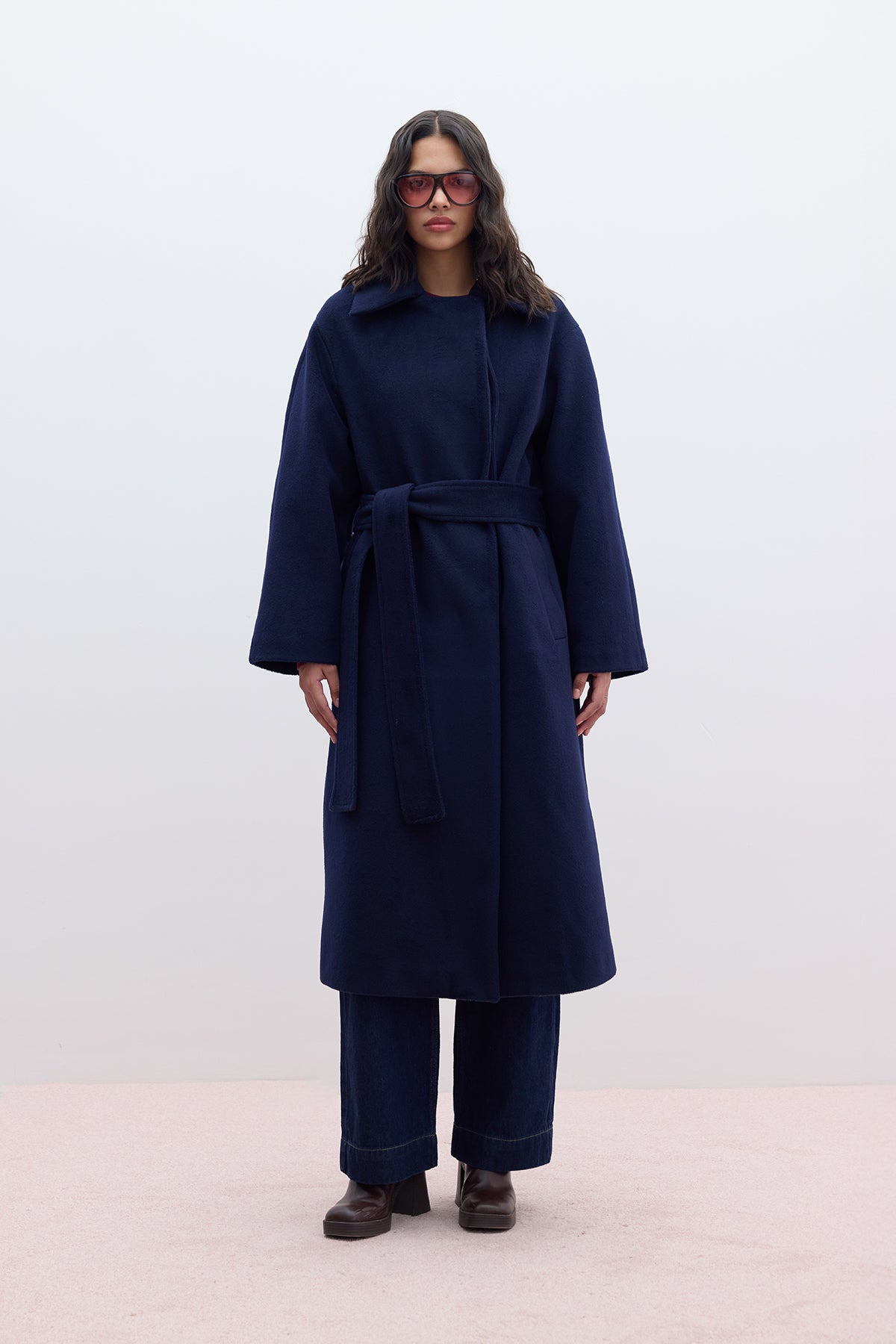 Plain Cachet Coat Navy Blue