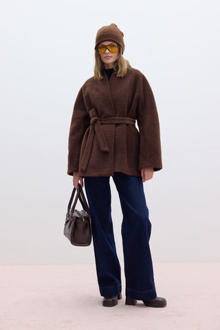 Stockholm Scarf Detailed Oversize Trench Coat Brown