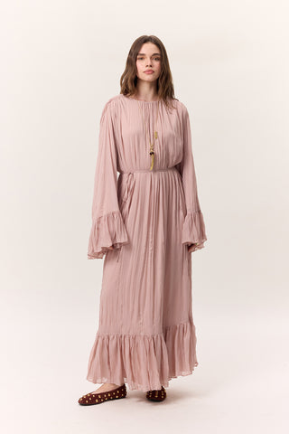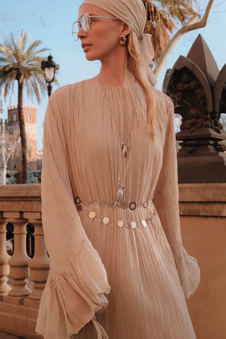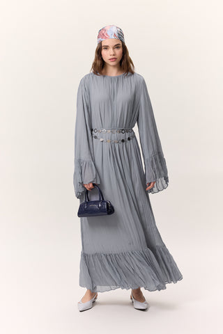 Crushed Pleated Tiered Maxi Dress Sage Green