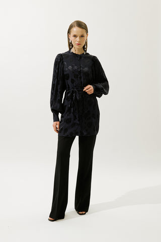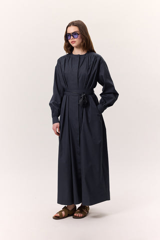 Ruched Detail Oversized Shirt Dress Navy Blue