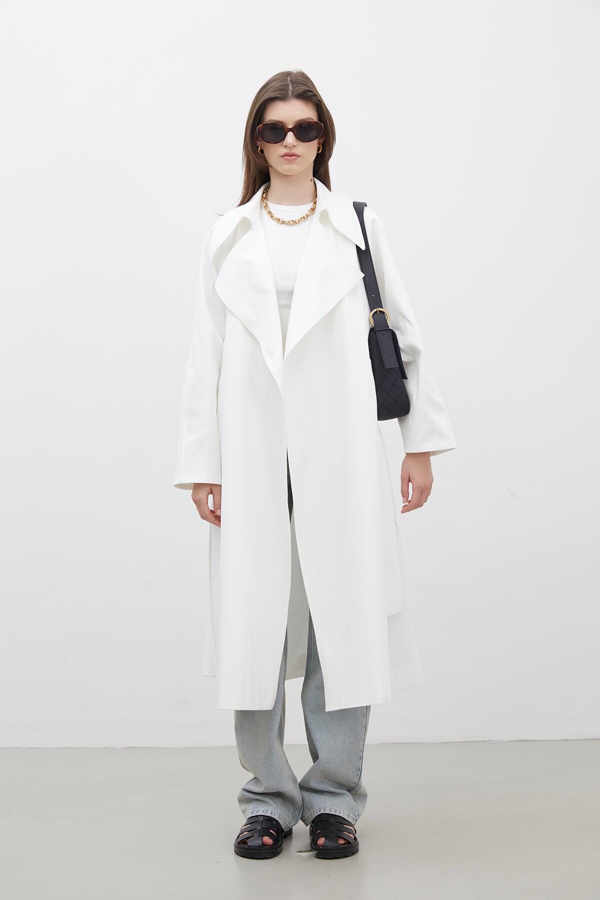 Oversize Wide Collar Trench Coat Ecru