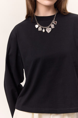 Fitted Long Sleeve Cotton T-Shirt Ecru