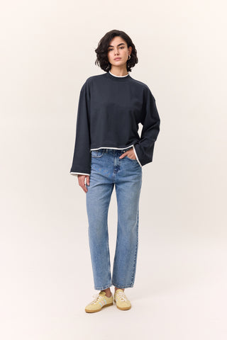Contrast Long-Sleeve T-Shirt Navy Blue