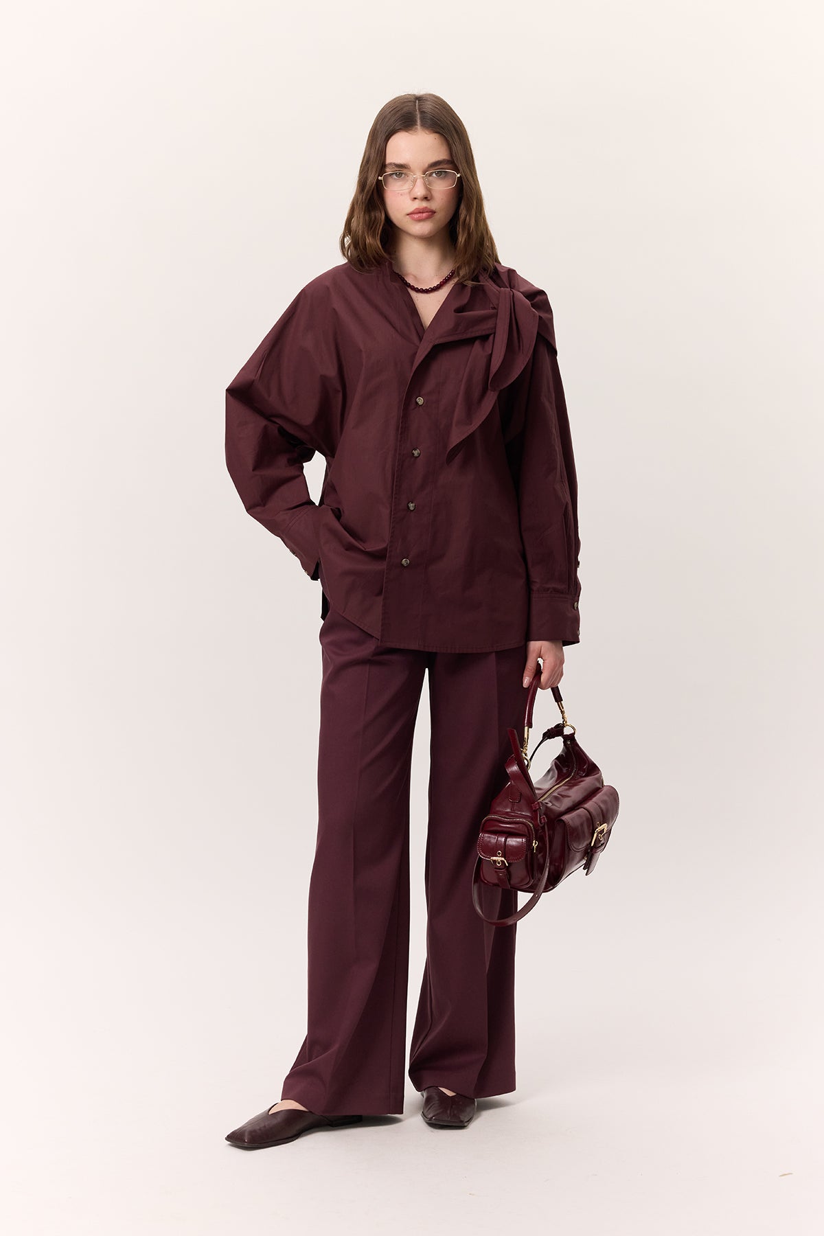 Tie-Detail Statement Shirt Burgundy