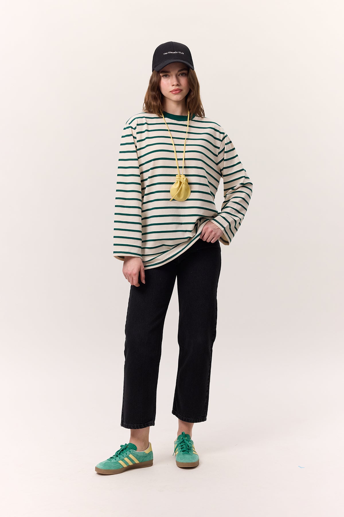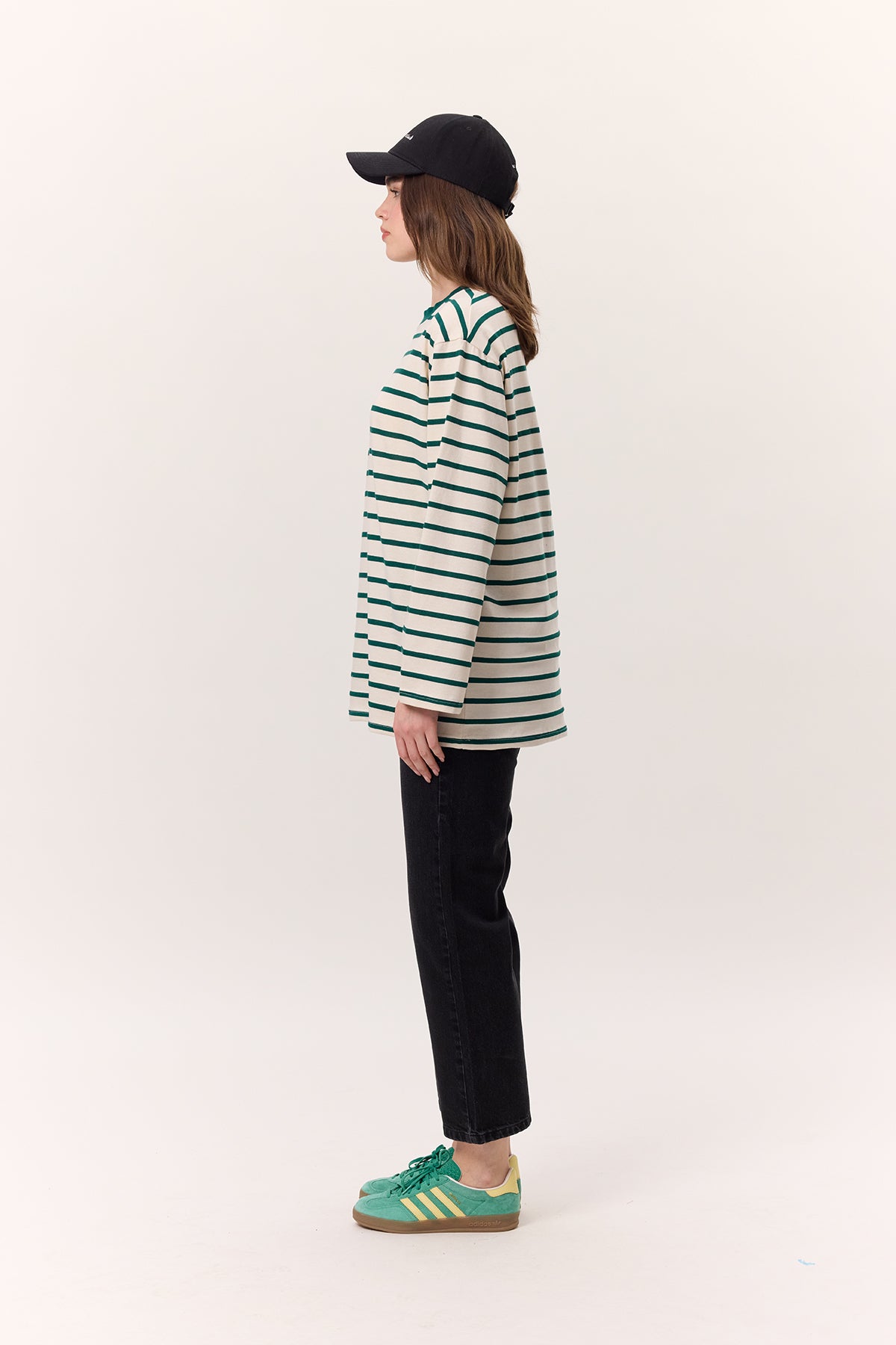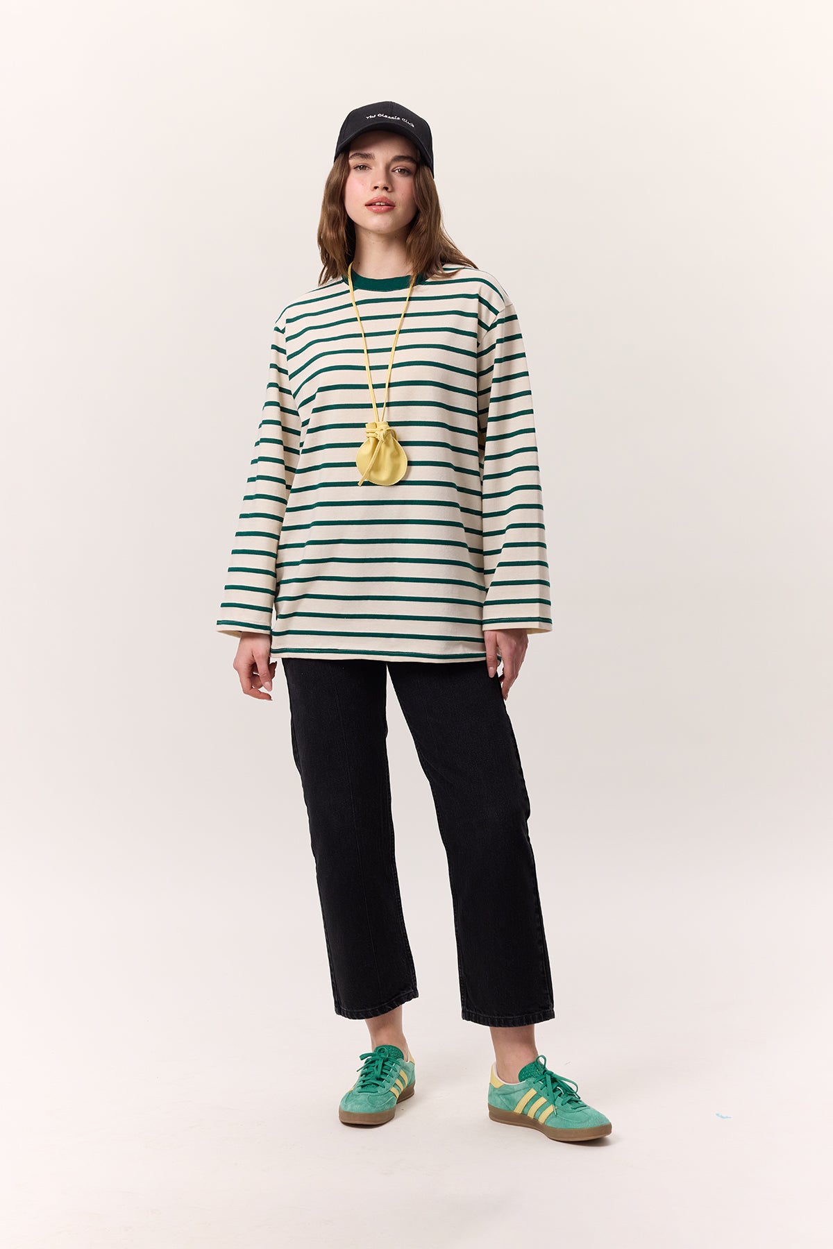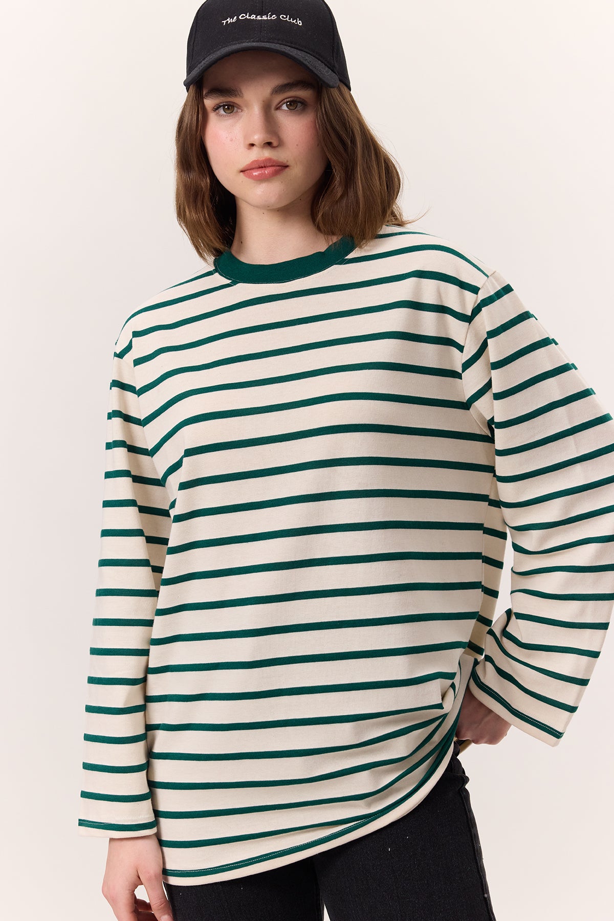 Striped Oversized Long Sleeve T-Shirt Green