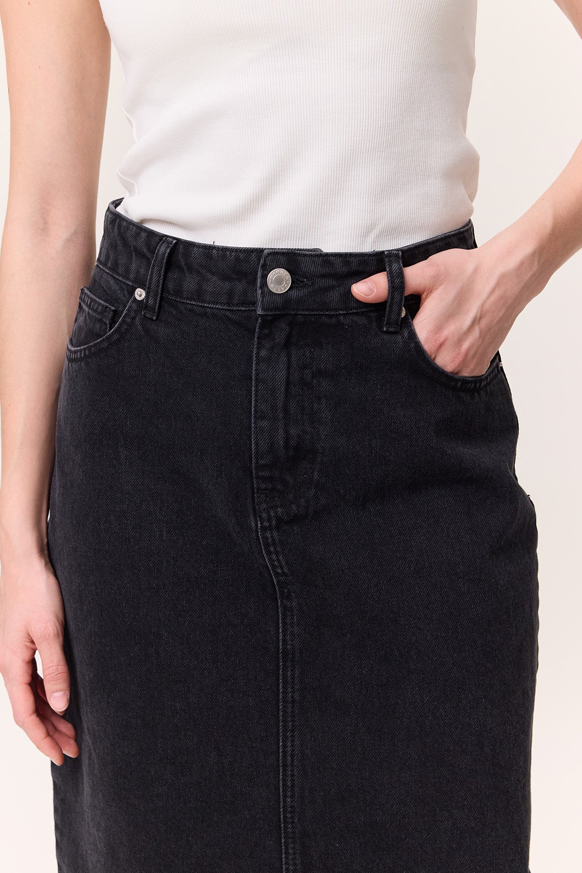 Long Denim Skirt Black