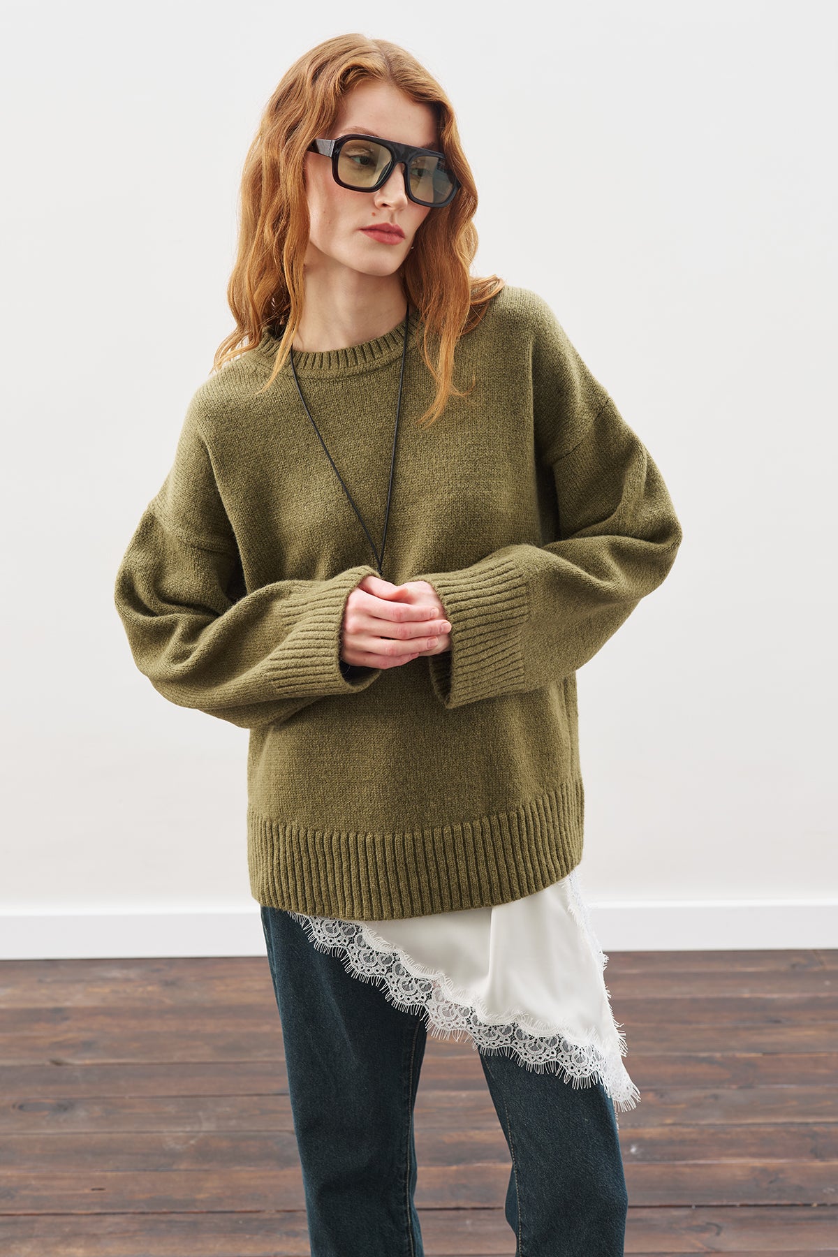 Yuvarlak yaka, uzun kol,ara boy, oversız kalıp.