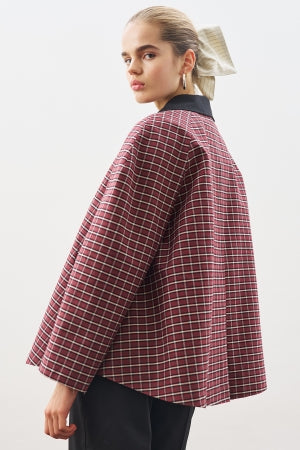 Contrast-Collar Trench Coat Plaıd
