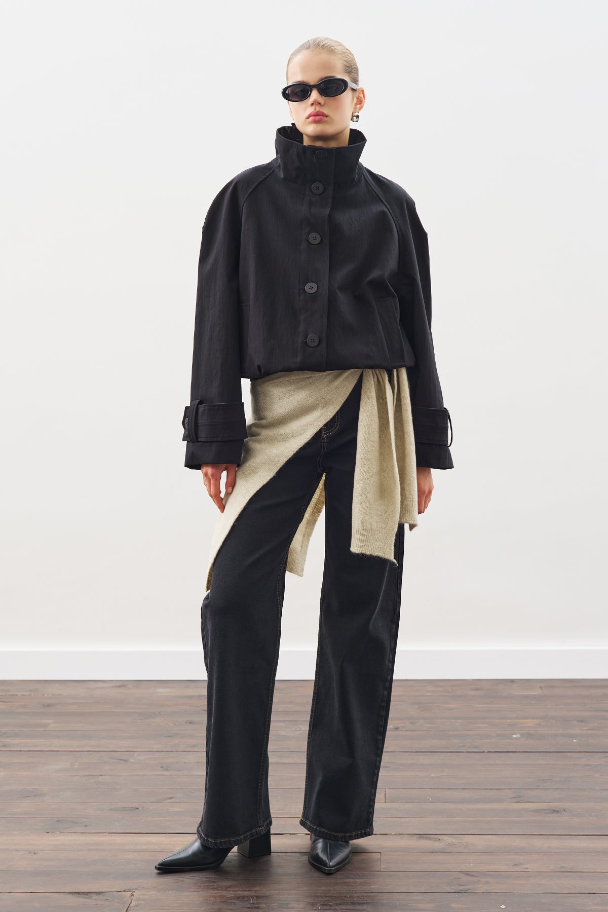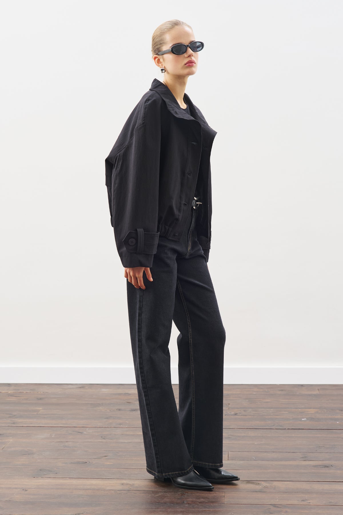 Trench-Style Bomber Jacket Black