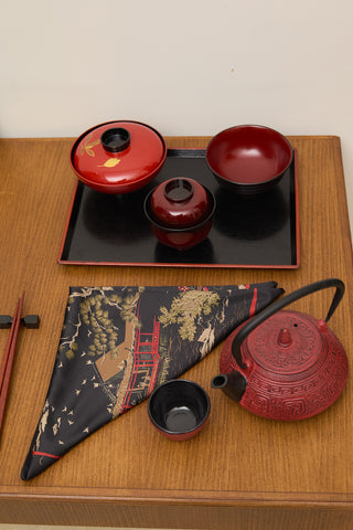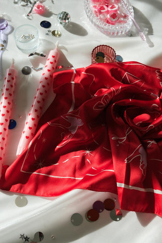 Patterned Mid Size Satin Scarf Nera Burgundy