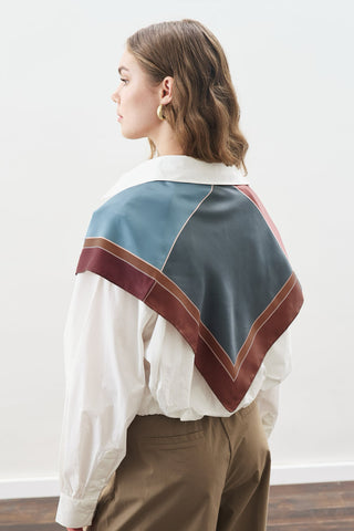 Patterned Mid Size Satin Scarf Nera Indigo
