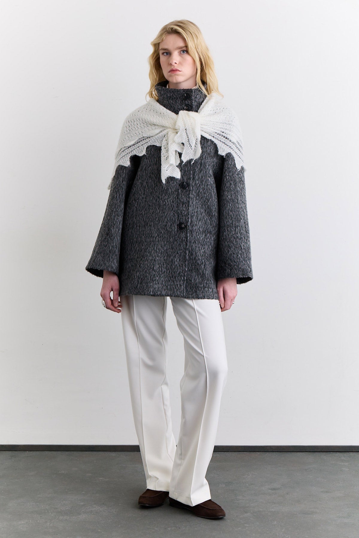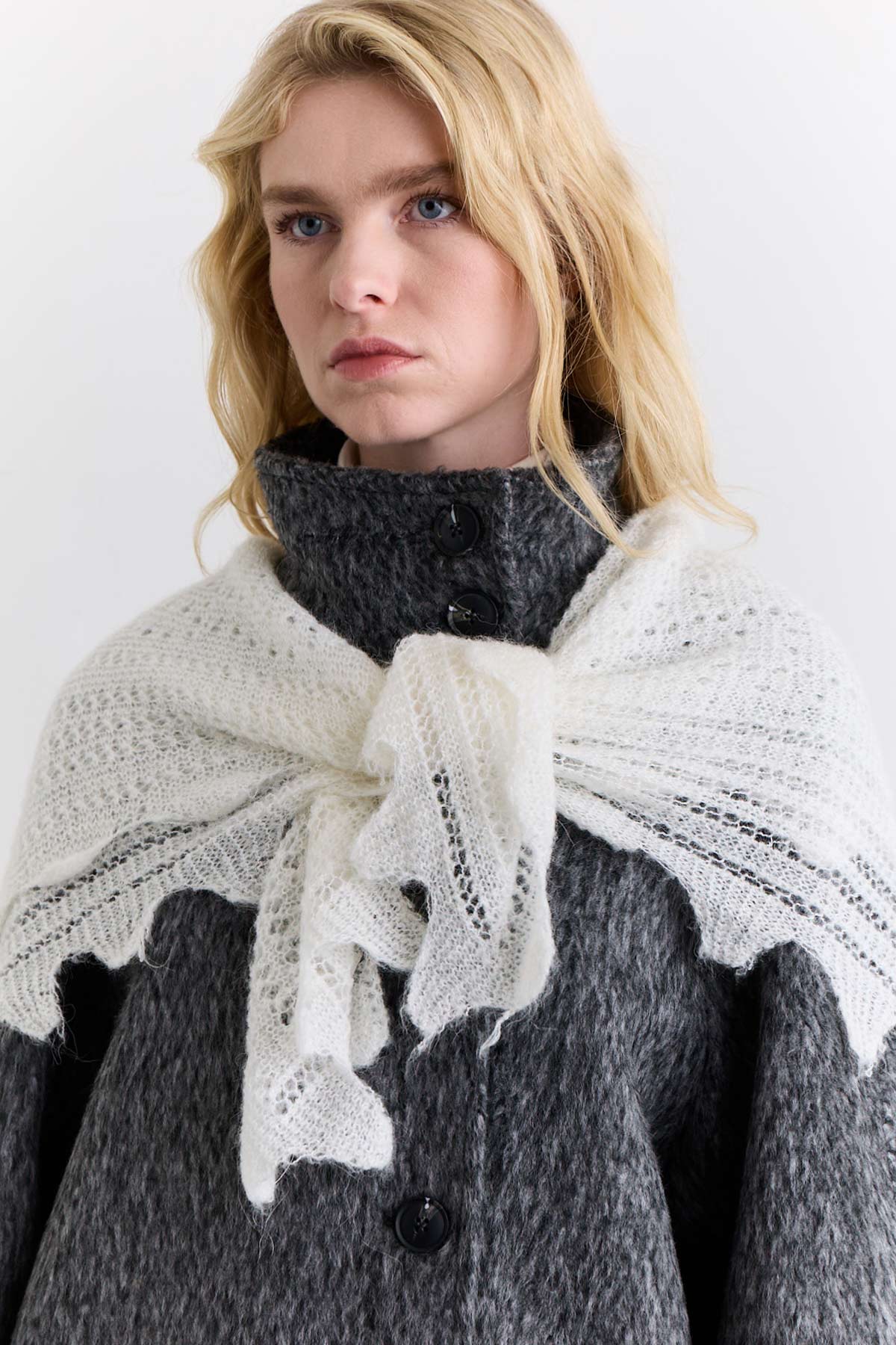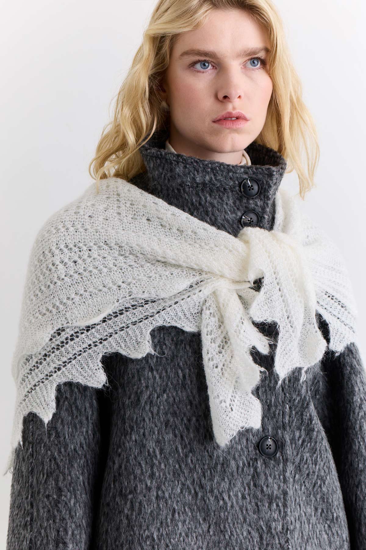 Open Knit Oversized Shawl Ecru