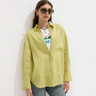 Lightweight Linen Oversized Shirt Grass Green