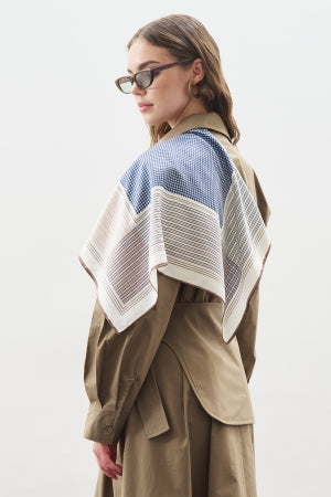Patterned Mid Size Satin Scarf Classic Navy