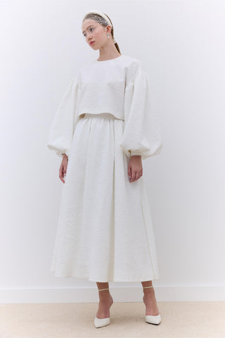 Pearl Embellished Jacquard Skirt Ecru