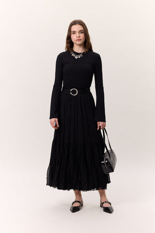 Satin Flared Evening Skirt Burgundy