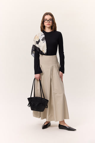 Cotton Tie-Waist Wrap Skirt Dark Brown