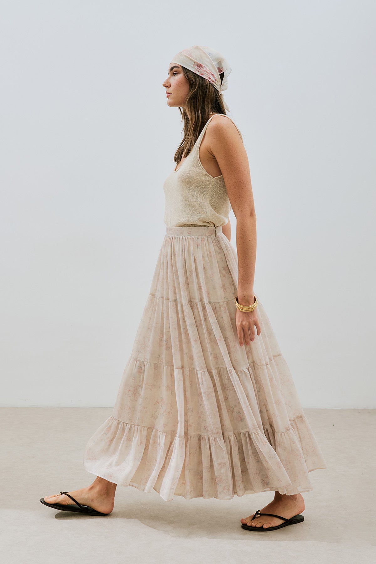 Ruched Chiffon Maxi Skirt Blush