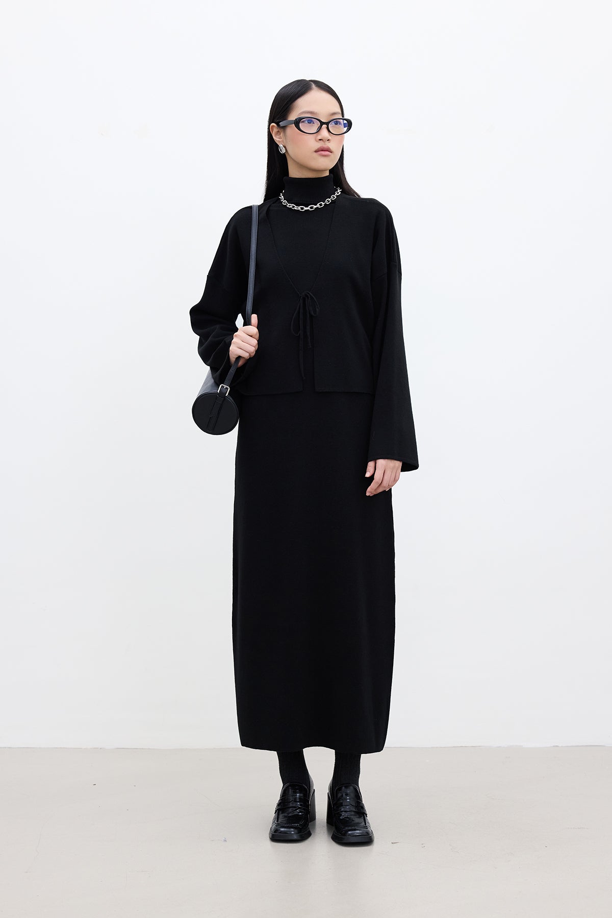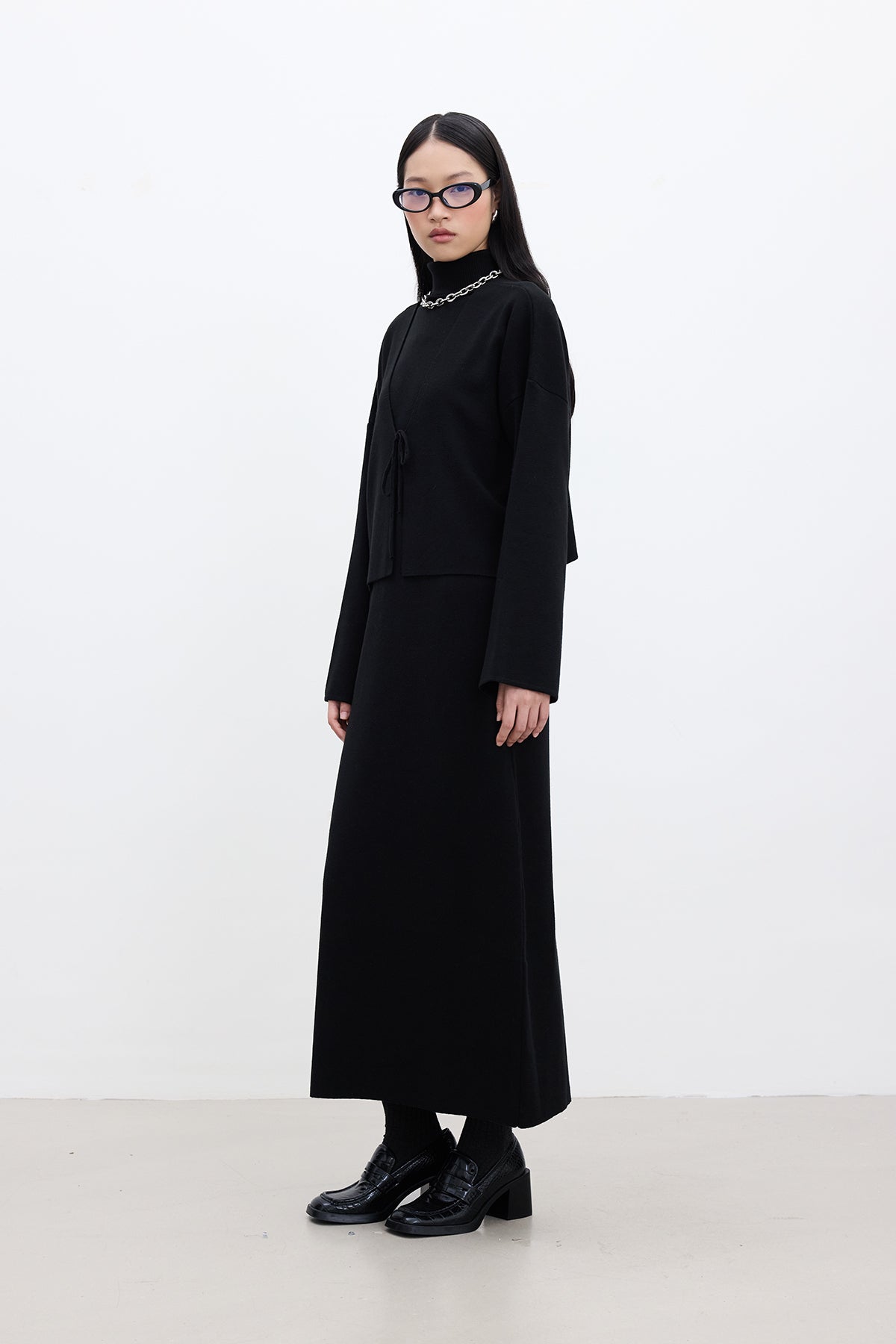 Lace Up Knit Cardigan Black
