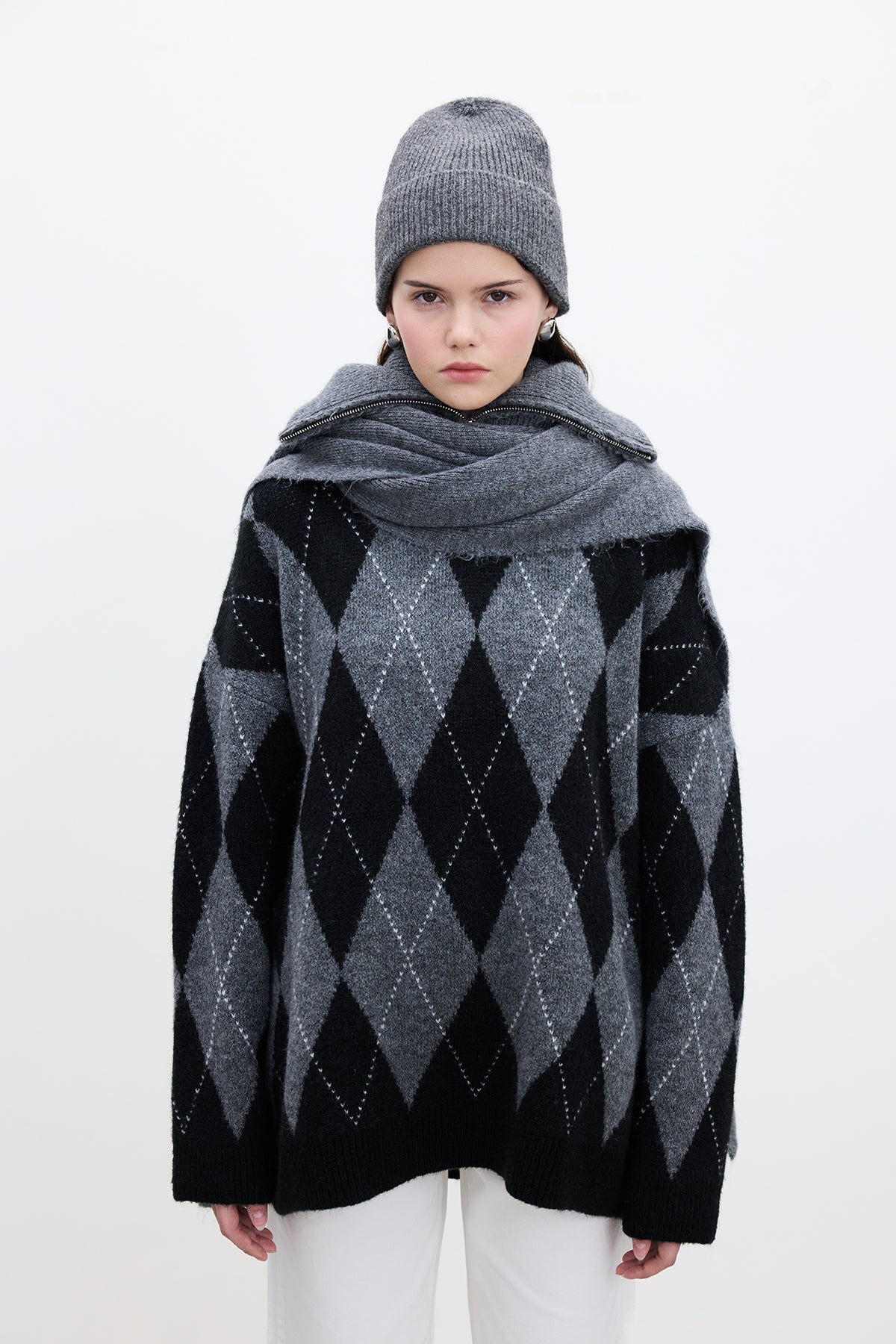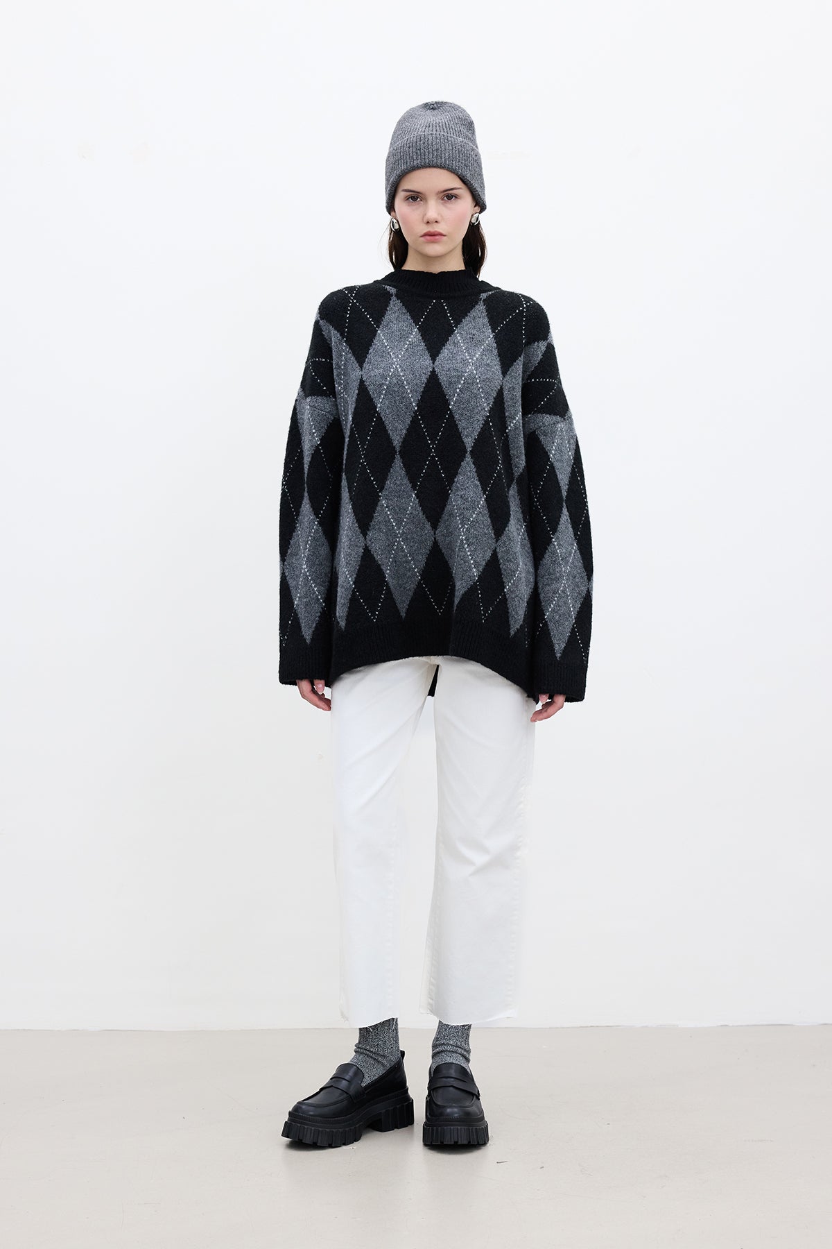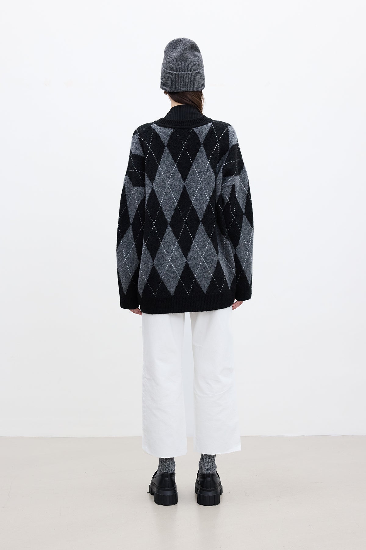 Argyle Oversized Sweater Black