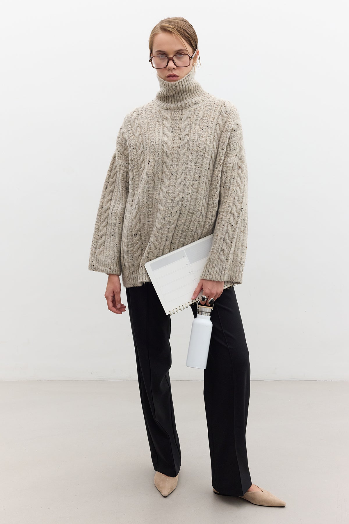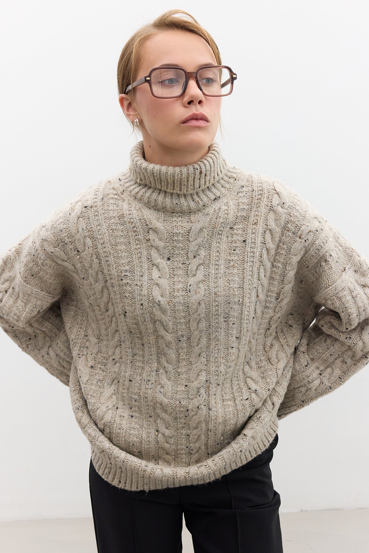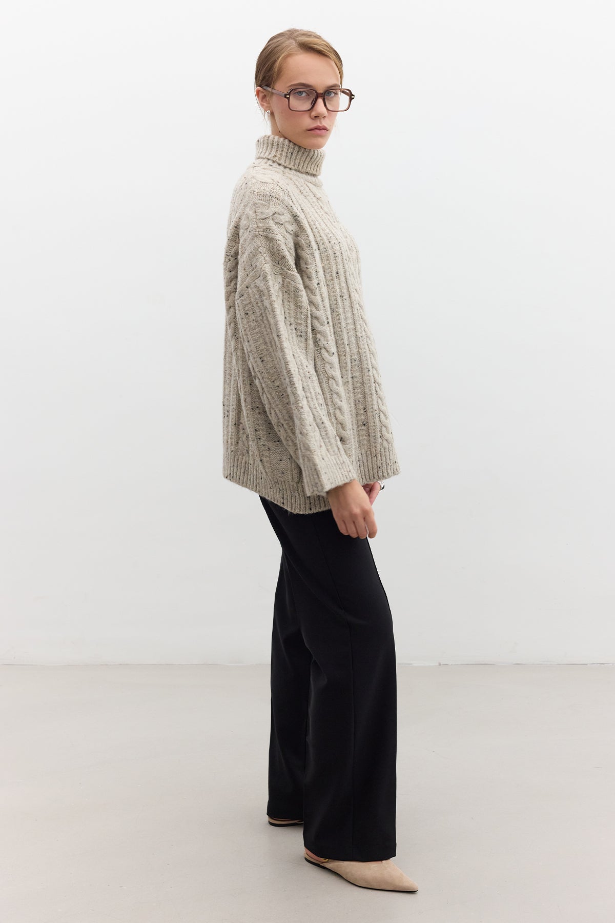 Turtleneck Knit Sweater Beige