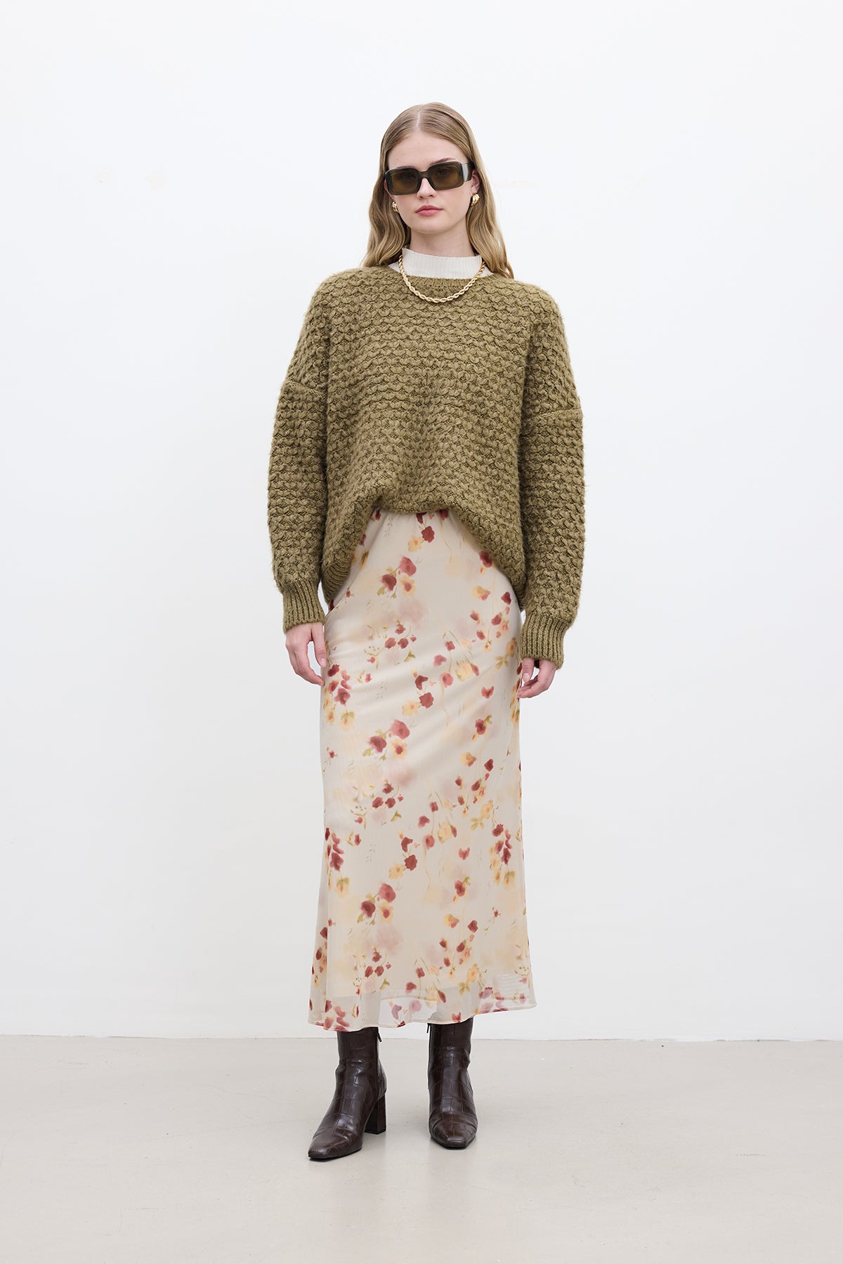 Patterned Knit Sweater Sand