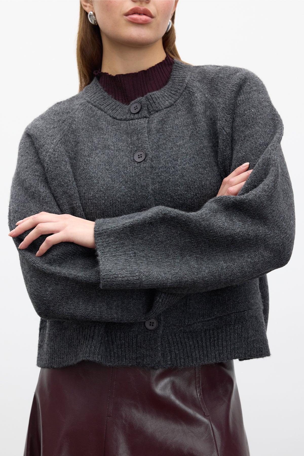 Button Up Knit Cardigan Anthracite
