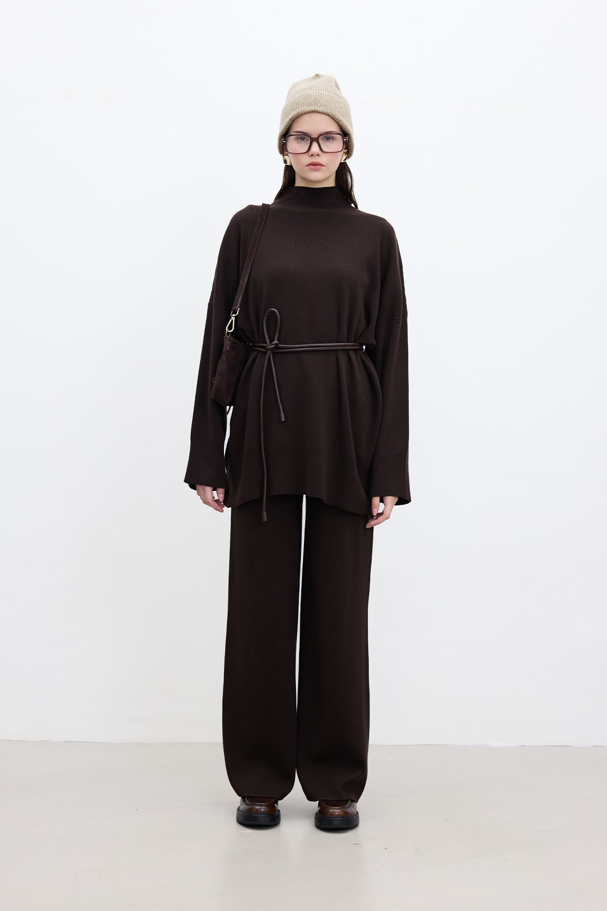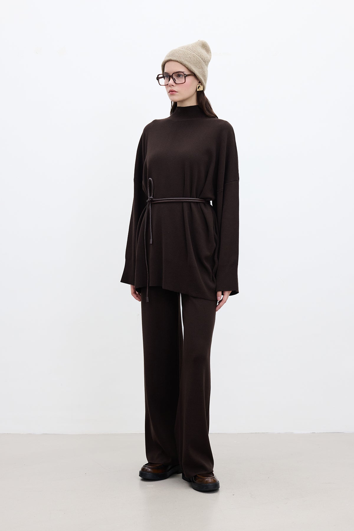 Oversized High Neck Sweater Brown