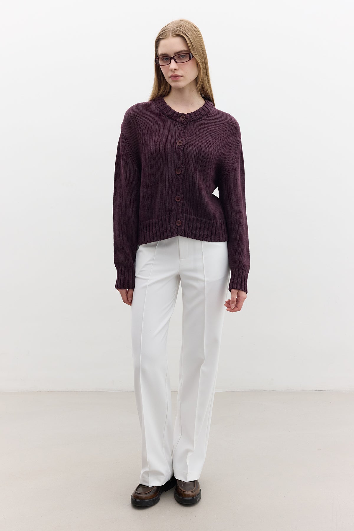 Cotton Knit Cardigan Purple