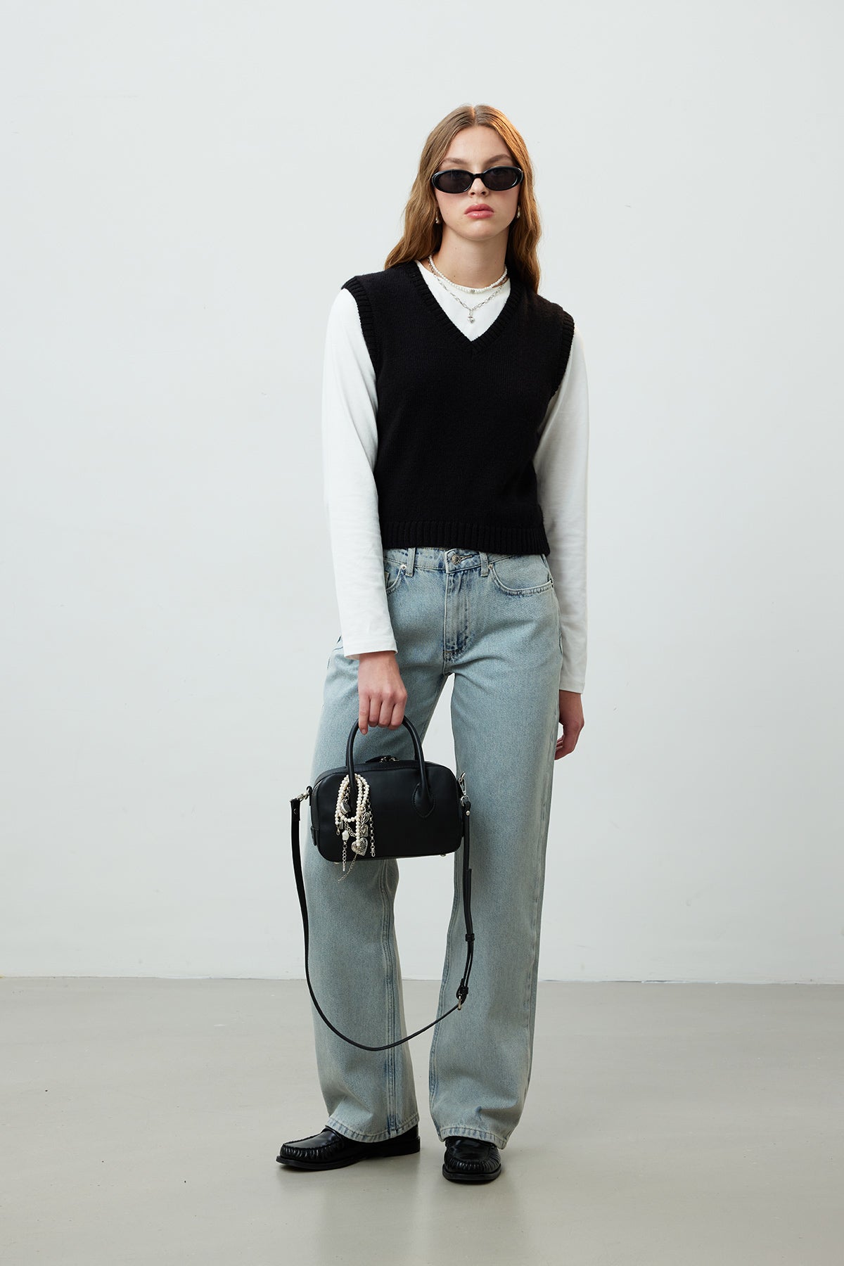 V-Neck Knit Sweater Black