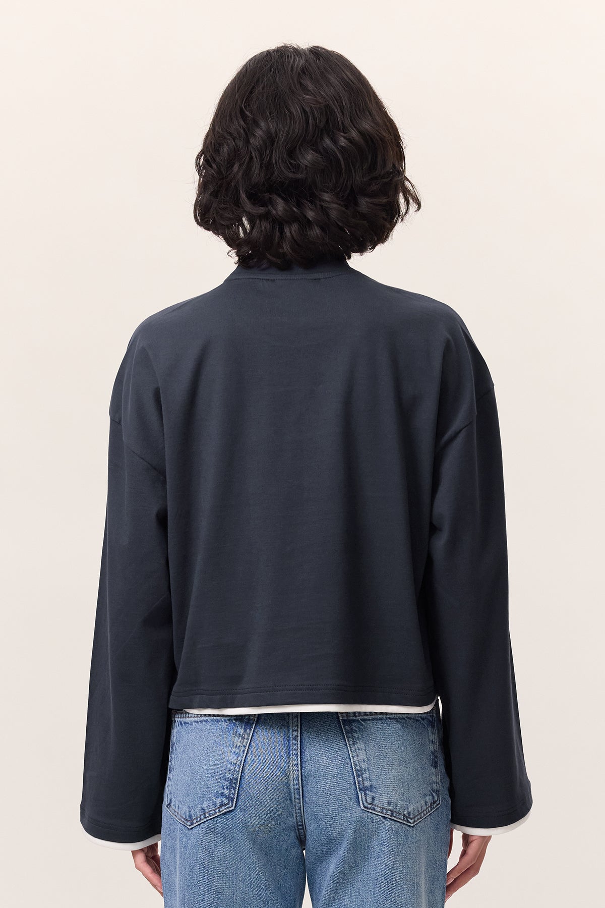 Contrast Long-Sleeve T-Shirt Navy Blue