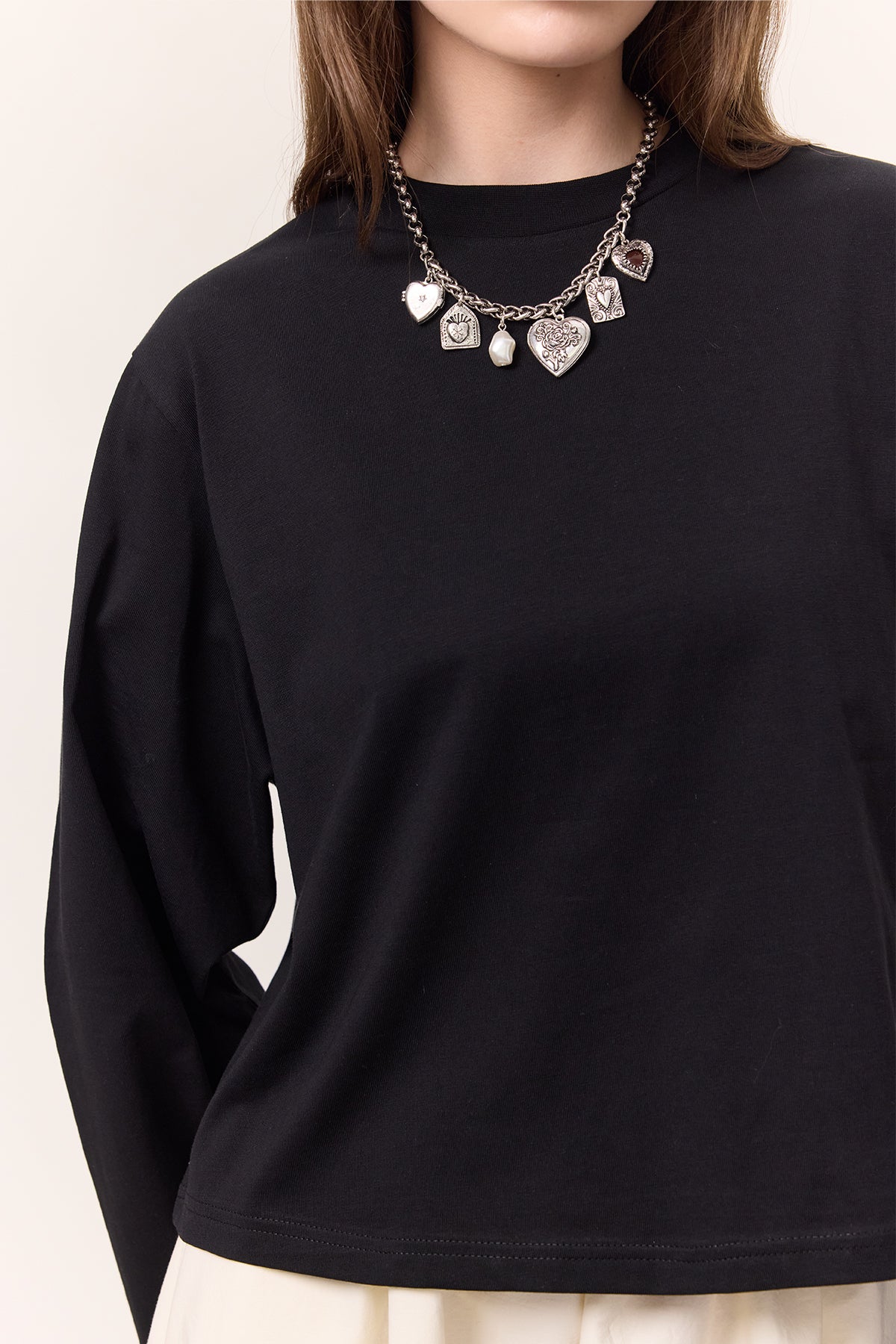 Cropped Long-Sleeve T-Shirt Black