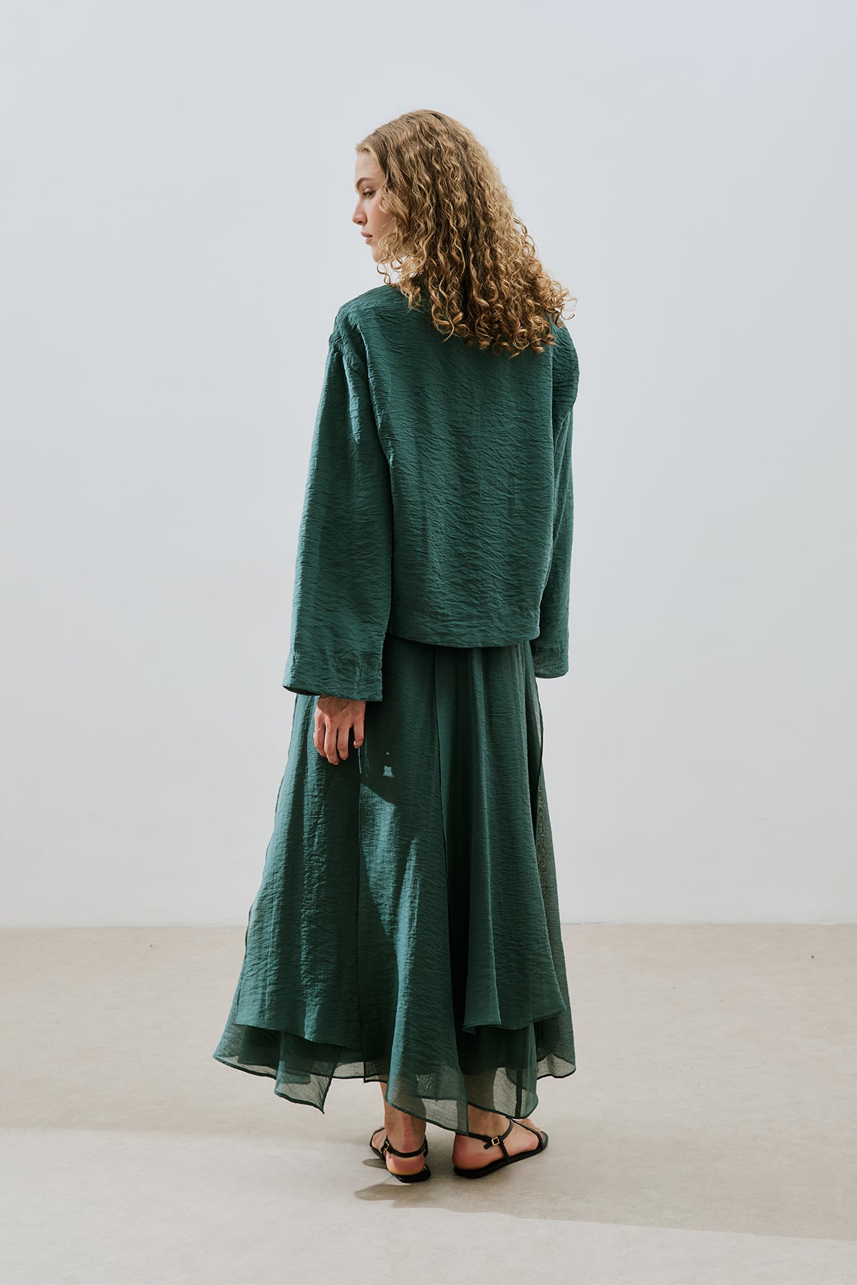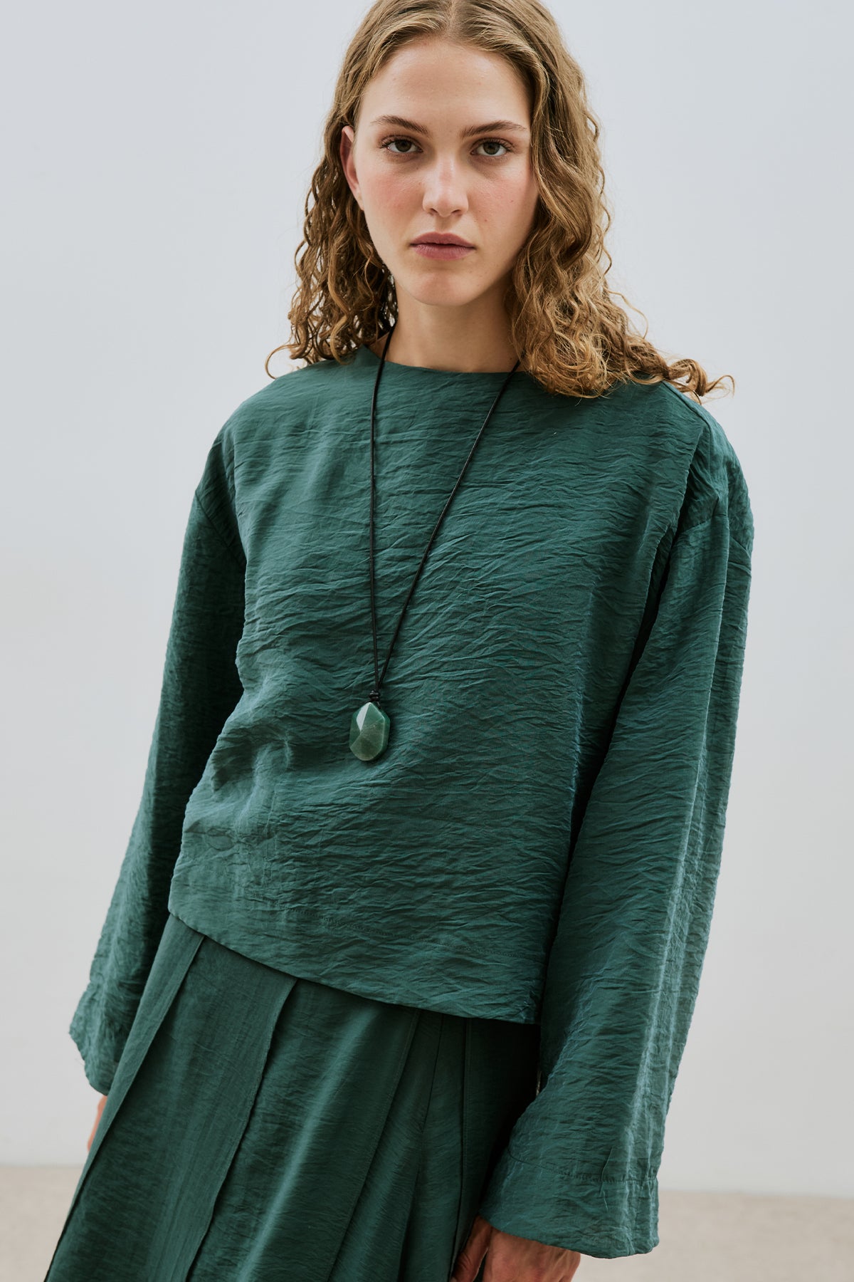 Draped Wide Sleeve Blouse Green