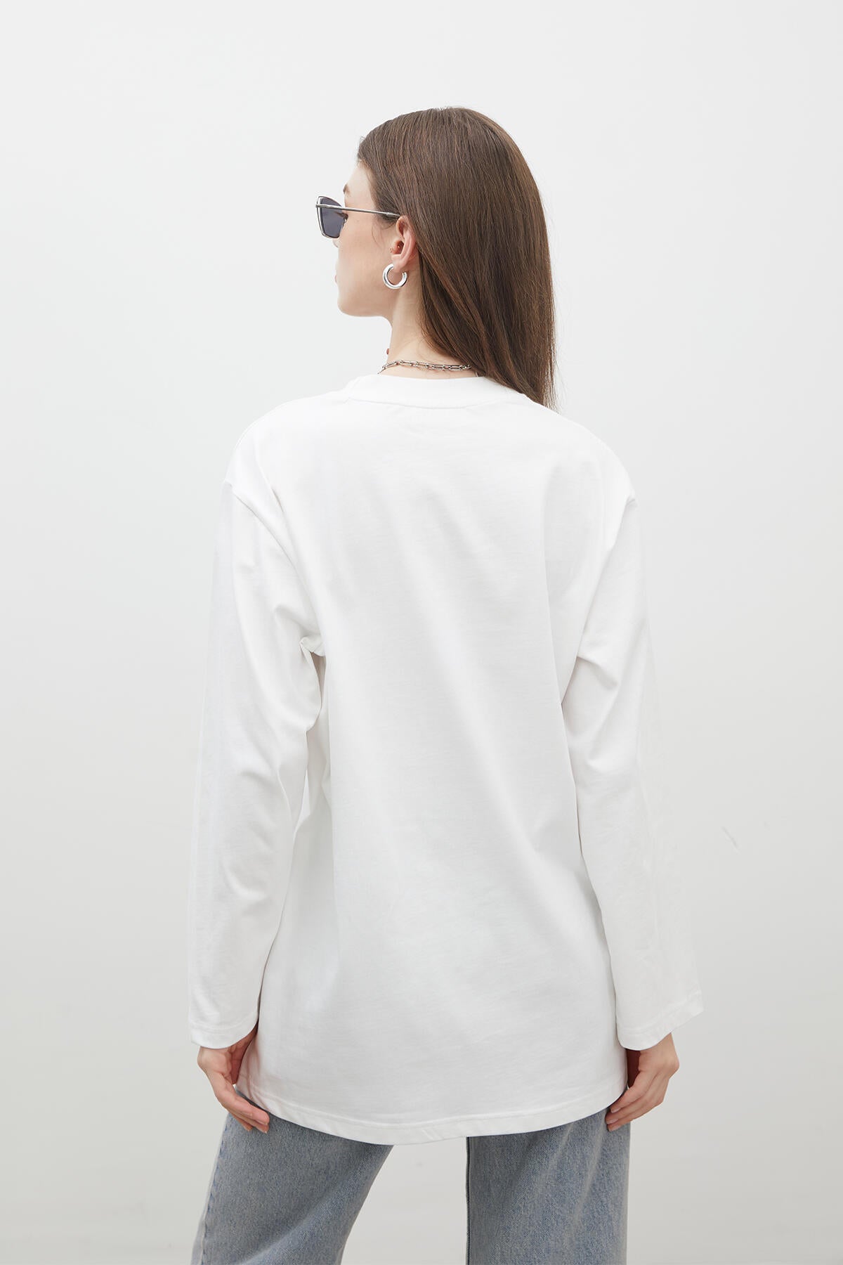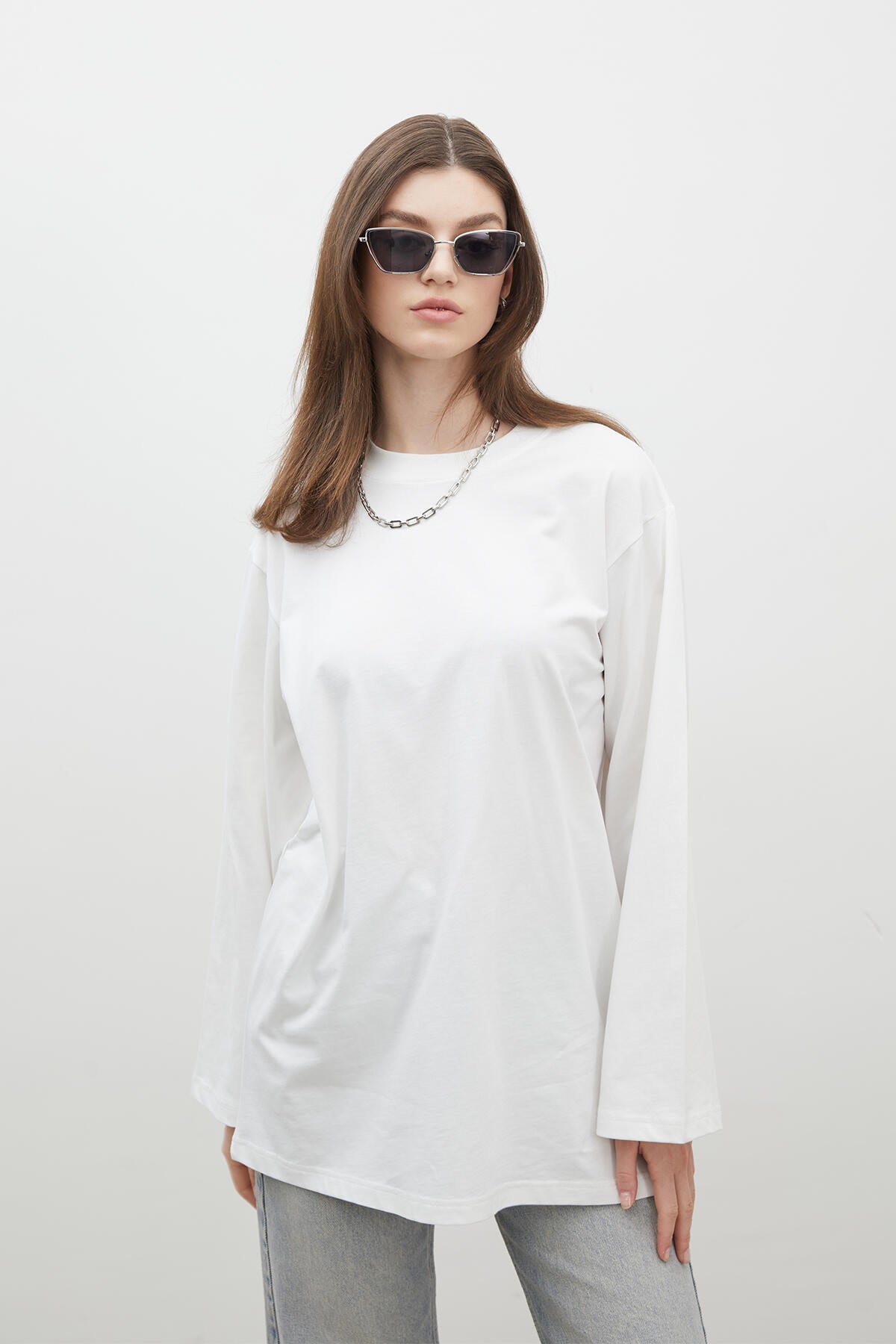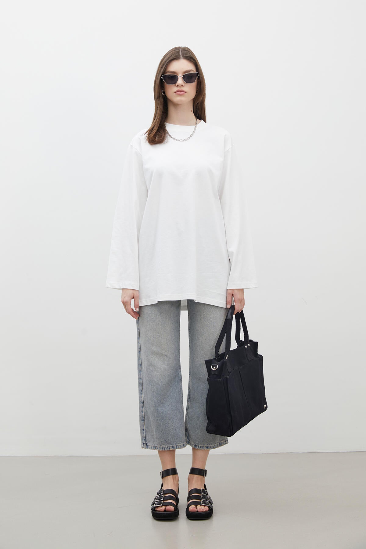 Oversize Cotton Long Sleeve T-Shirt Ecru