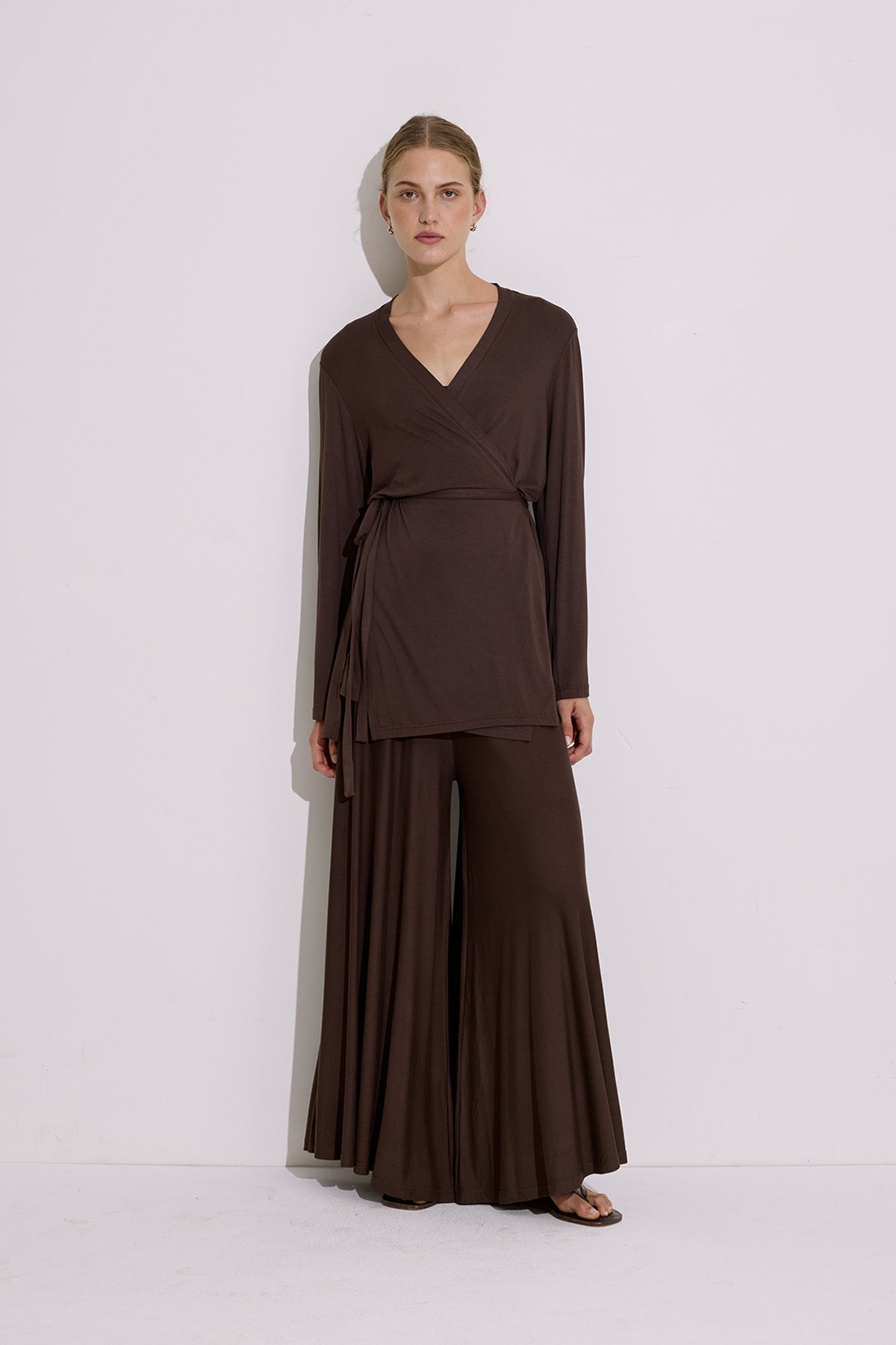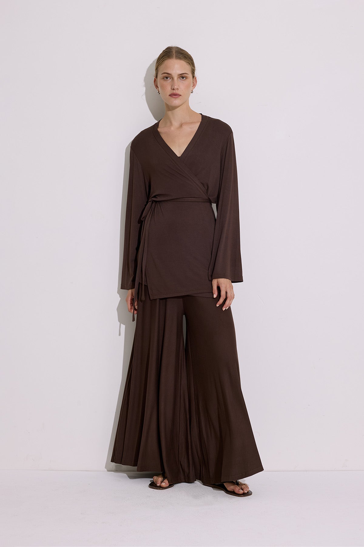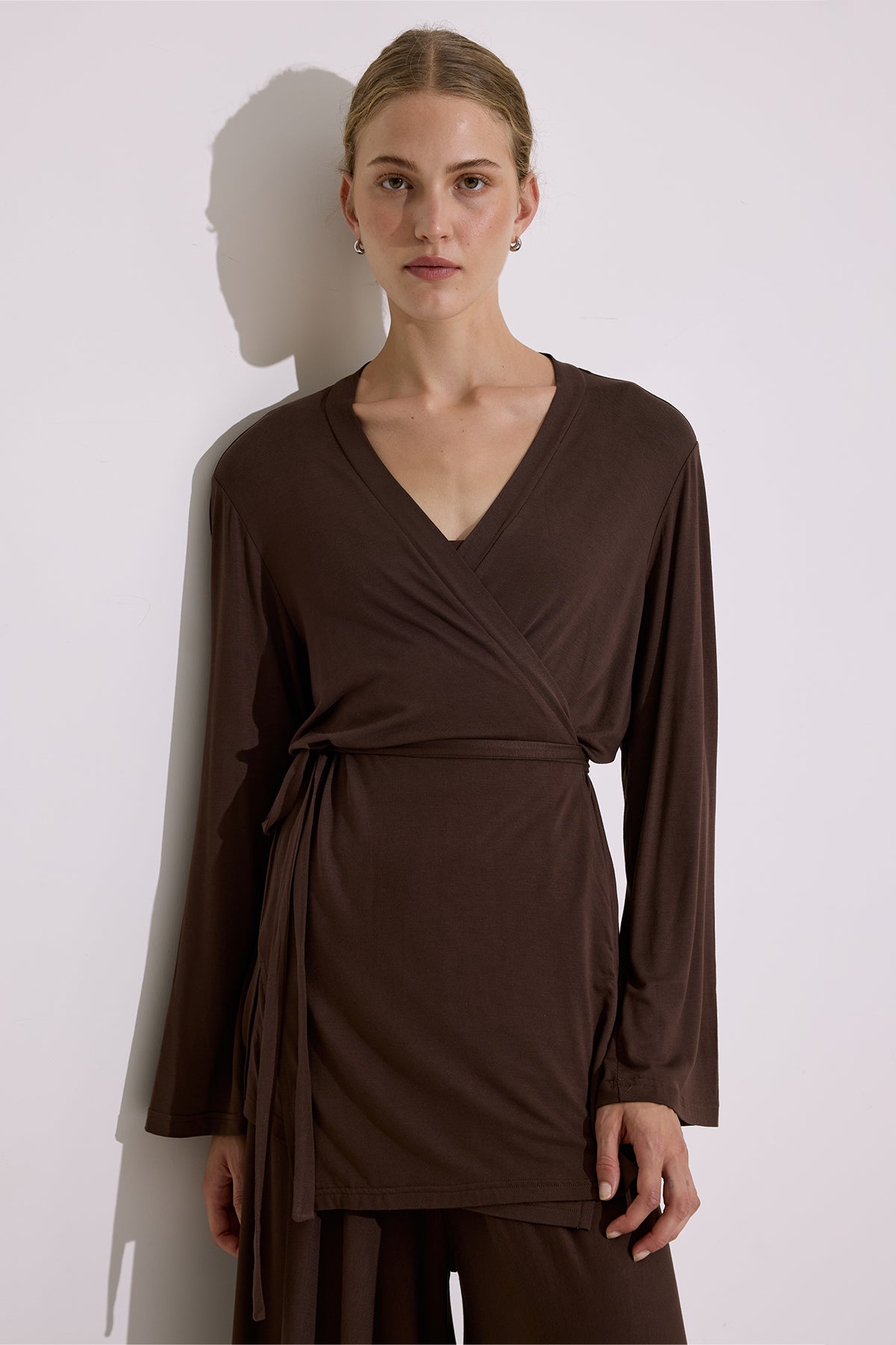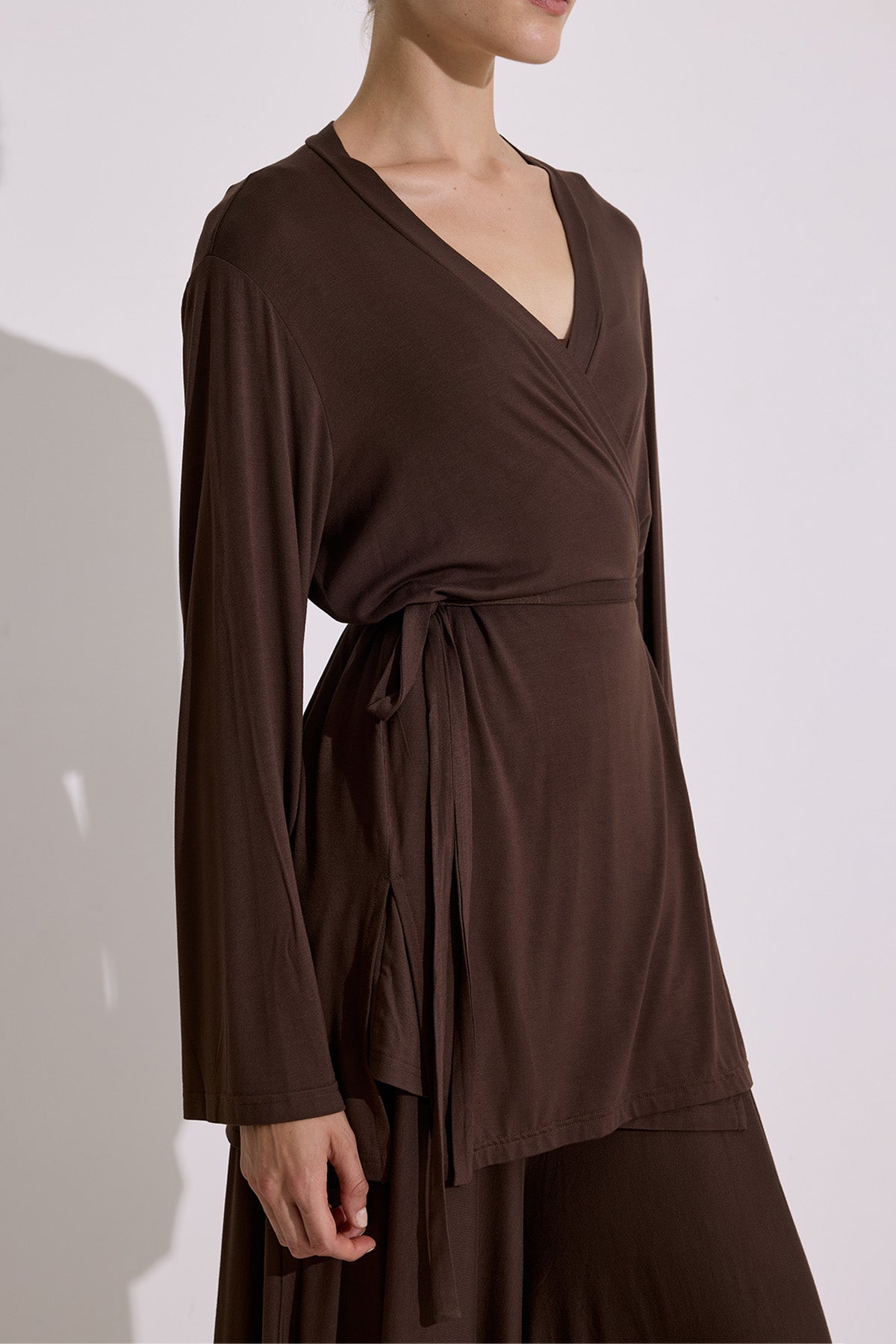 Tie Front Draped Kimono Brown