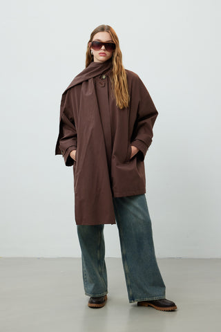 Stockholm Scarf Detailed Oversize Trench Coat Brown