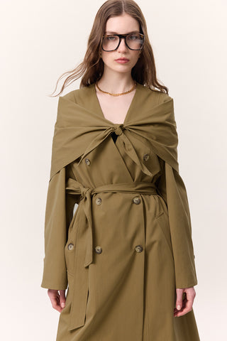 Stockholm Scarf Detailed Oversize Trench Coat Green