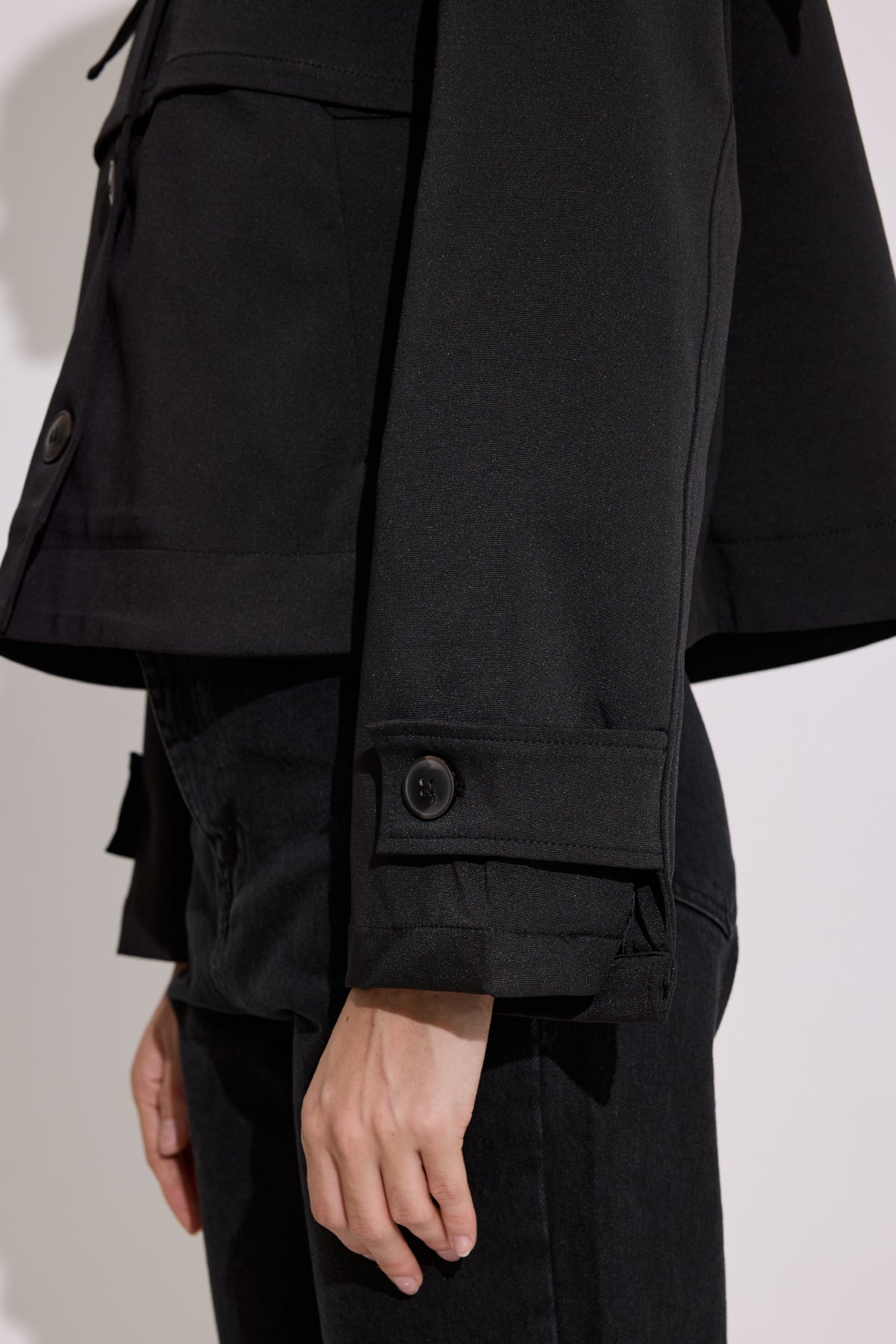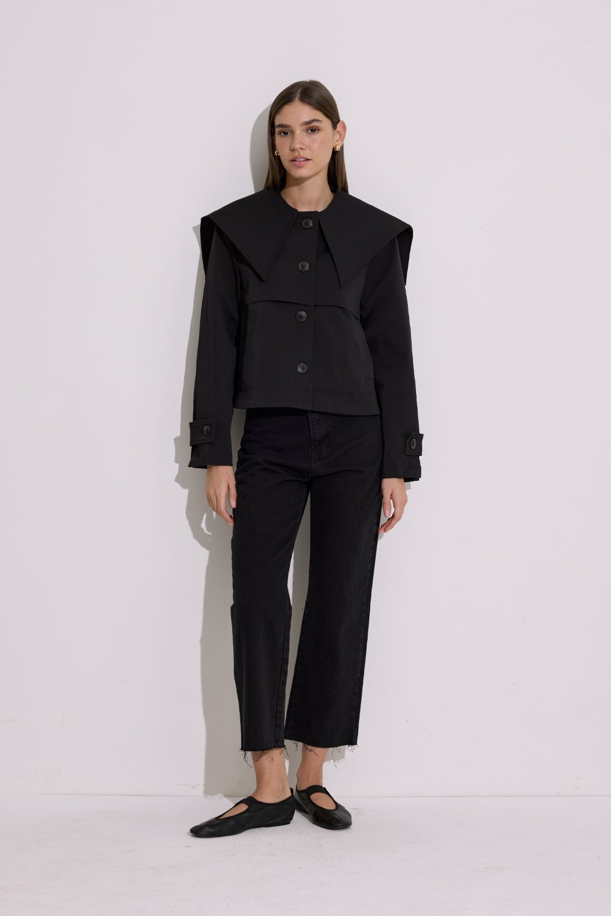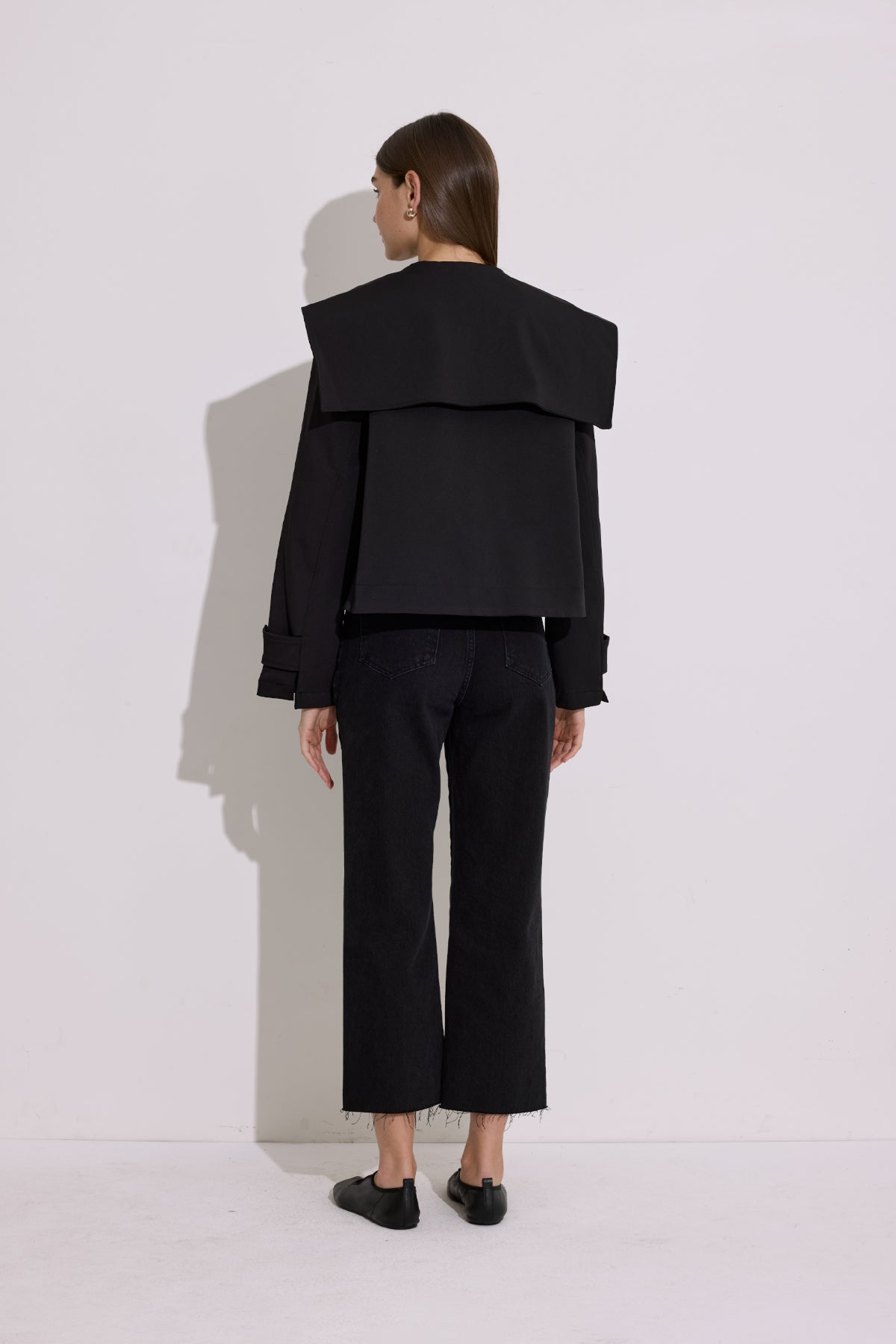 Wide Collar Cropped Trench Coat Black
