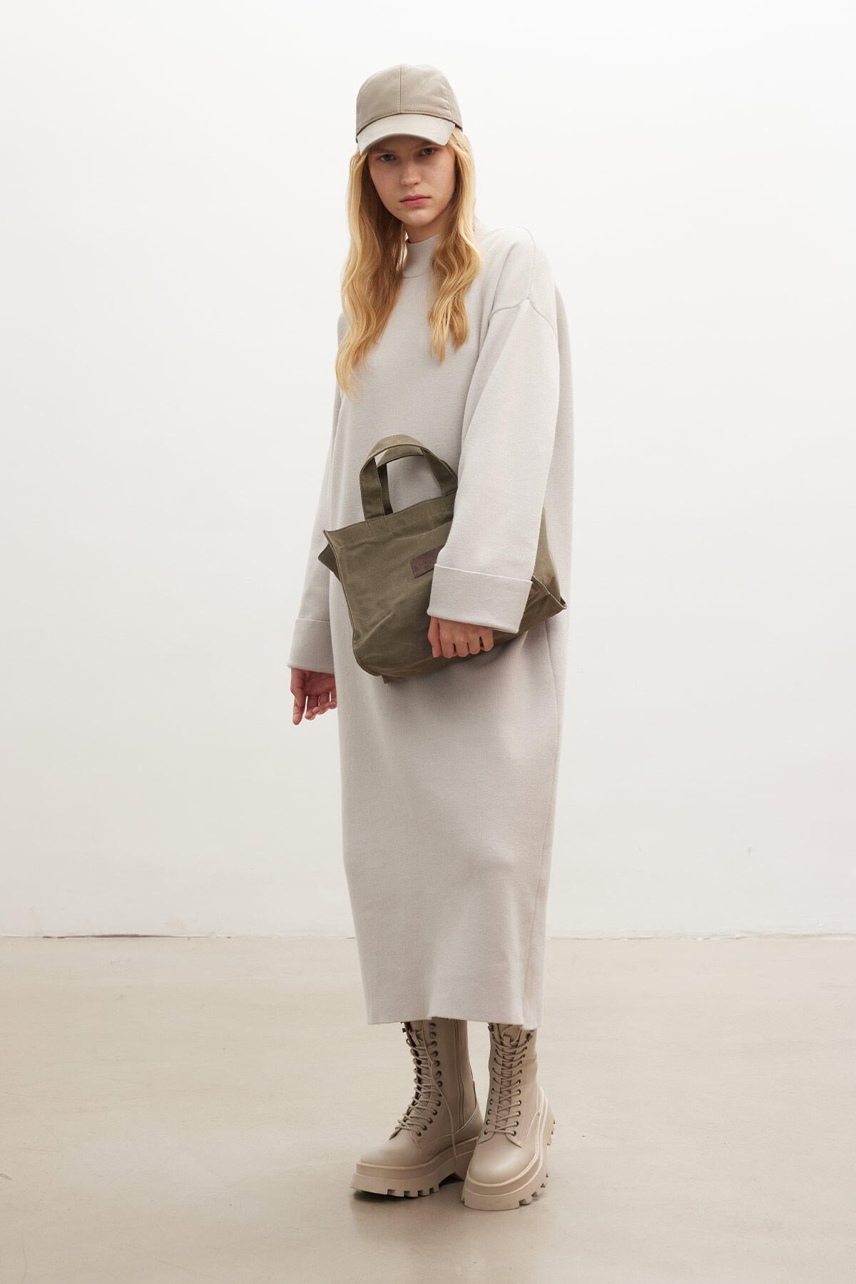 Waxed canvas fabric, with an inner pocket detail, leather brand logo detail, detachable and adjustable strap, snap closure.