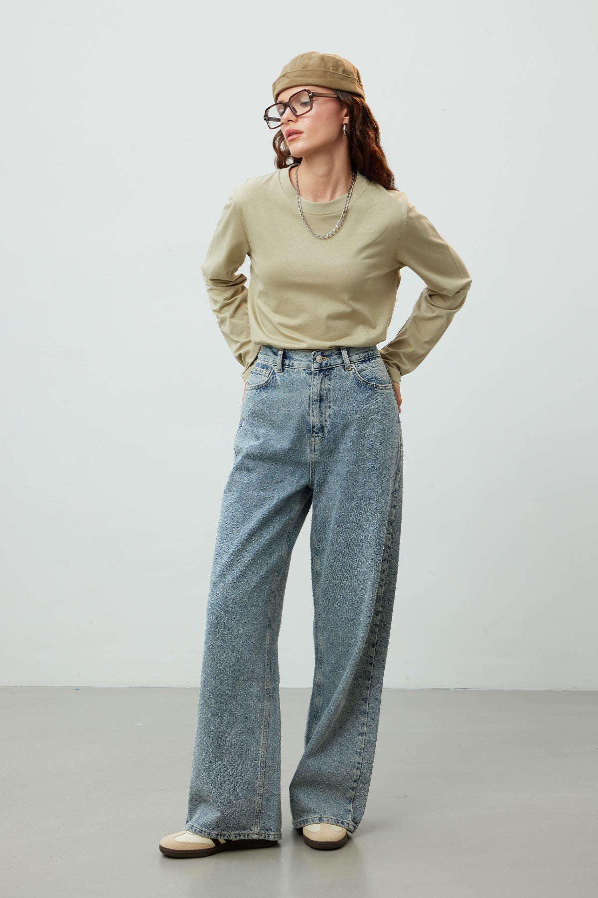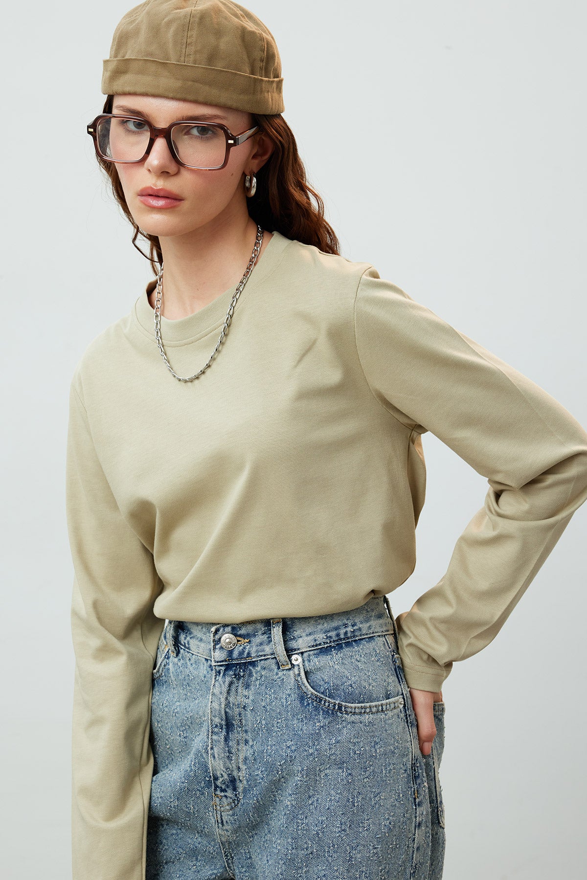 Fitted Long Sleeve Cotton T-Shirt Stone