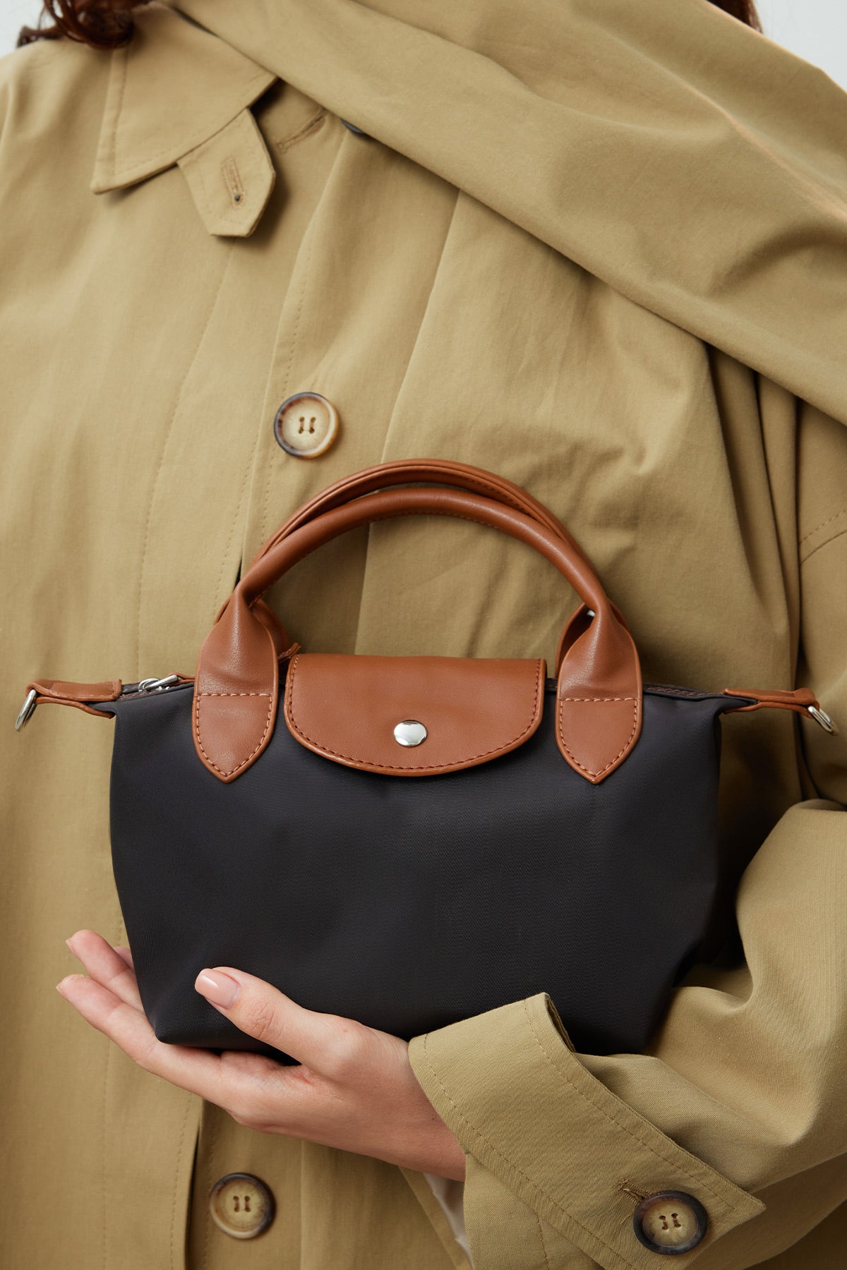 With a flap, zip, and snap closure, adjustable crossbody strap, lined, with a small inner pocket, trimmed with synthetic leather, made from technical fabric.