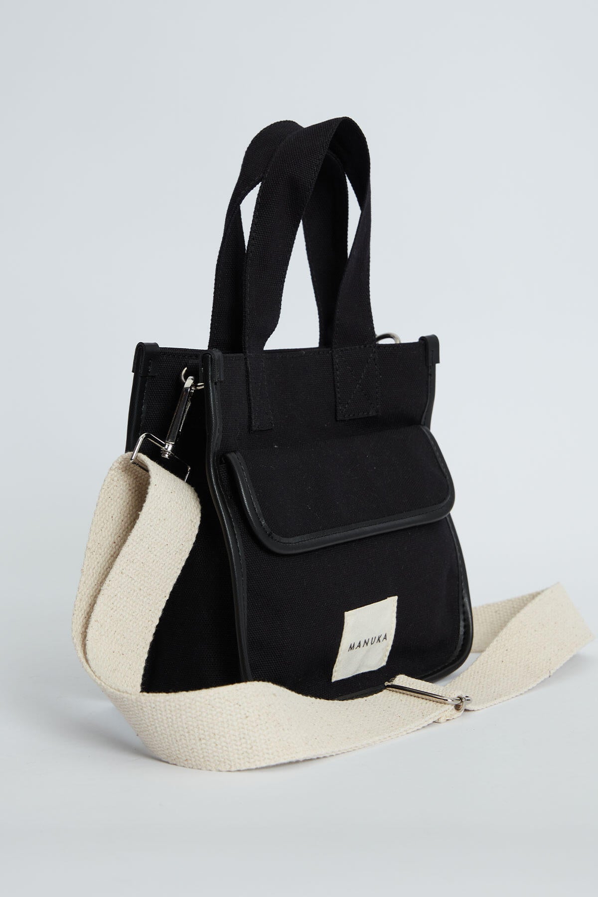Crafted from durable canvas fabric, this mini bag features pocket details on both the front and back, with a subtle mini Manuka label accentuating the rear pocket for a touch of brand elegance. The interior is thoughtfully lined and includes a small zippered pocket, perfect for securing your essentials. Complete with a small hand strap and an additional adjustable shoulder strap, this bag offers versatility to suit your style and needs.