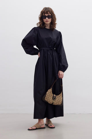 Balloon Sleeve Satin Evening Dress Purple