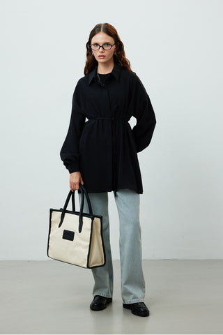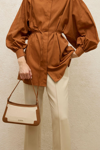 Faux Leather Detail Canvas Shoulder Bag Camel