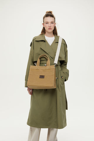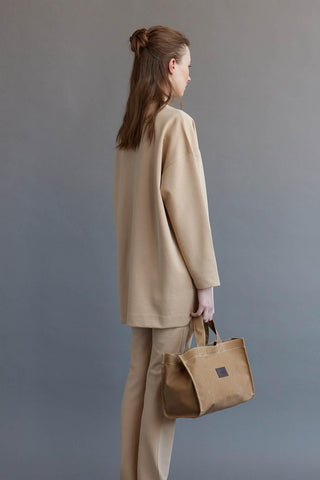 Faux Leather Detailed Canvas Bag Natural