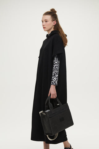 Square Faux Leather Bag With Wide Pockets Black