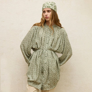 Pleated Wide-Sleeve Tunic Dusty Rose