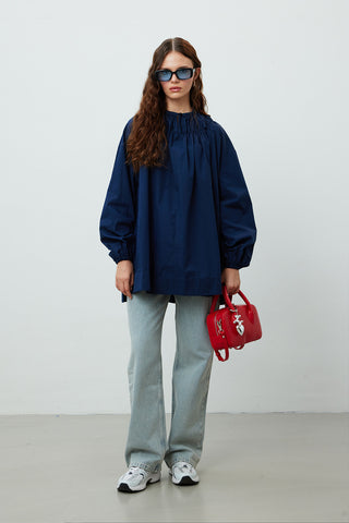 Voile Tunic With Pleat Details Navy Blue