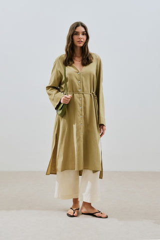 Textured Button Longline Tunic Natural