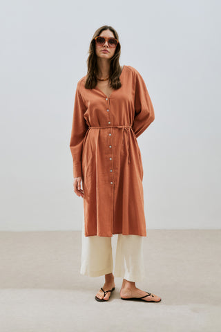 Textured Button Longline Tunic Cinnamon
